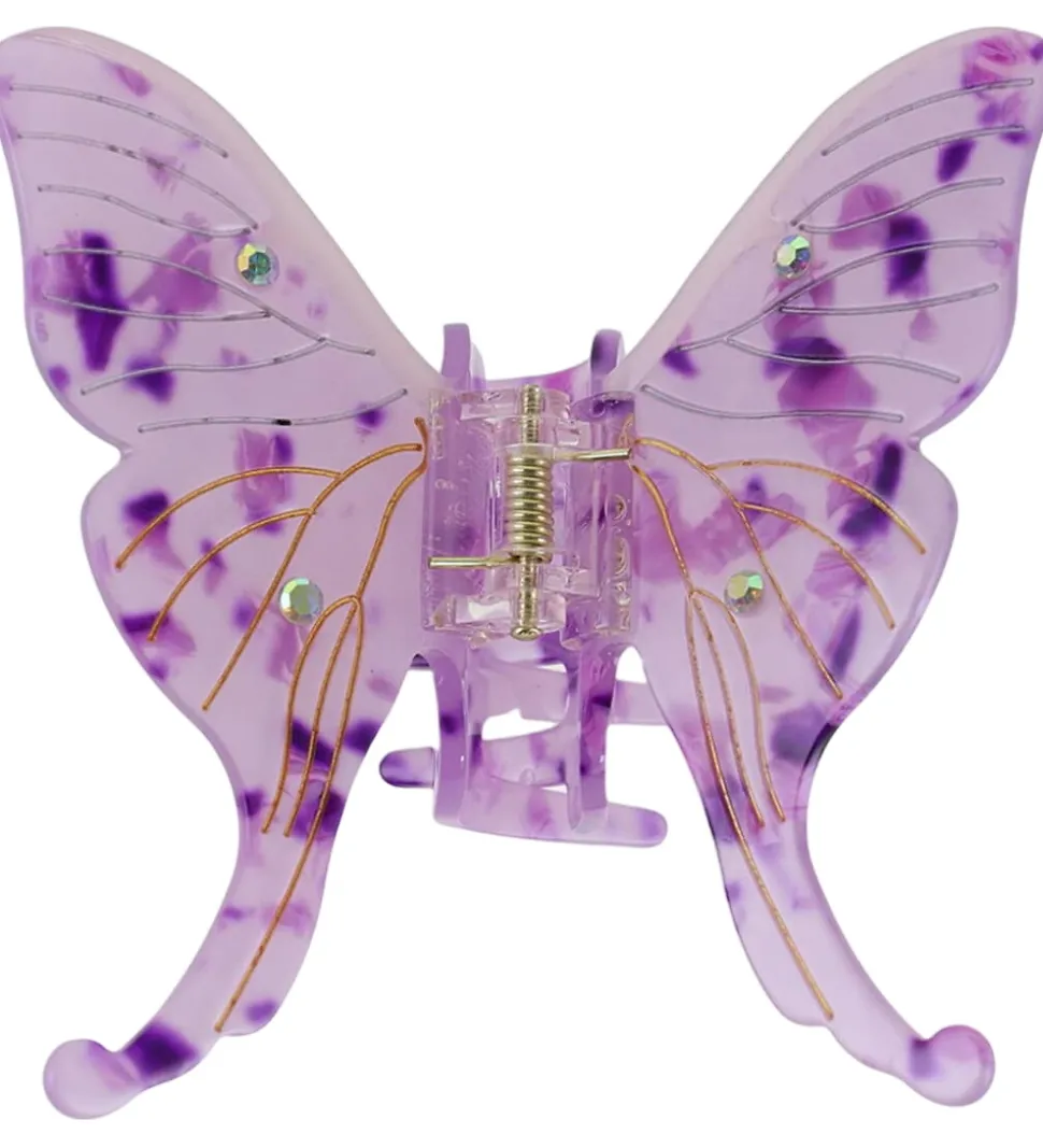 Flot By Stær hårklemme formet som en sommerfugl i en lilla nuance med smukke detaljer. By Stær hårklemmen tilføjer elegance og stil til frisuren.