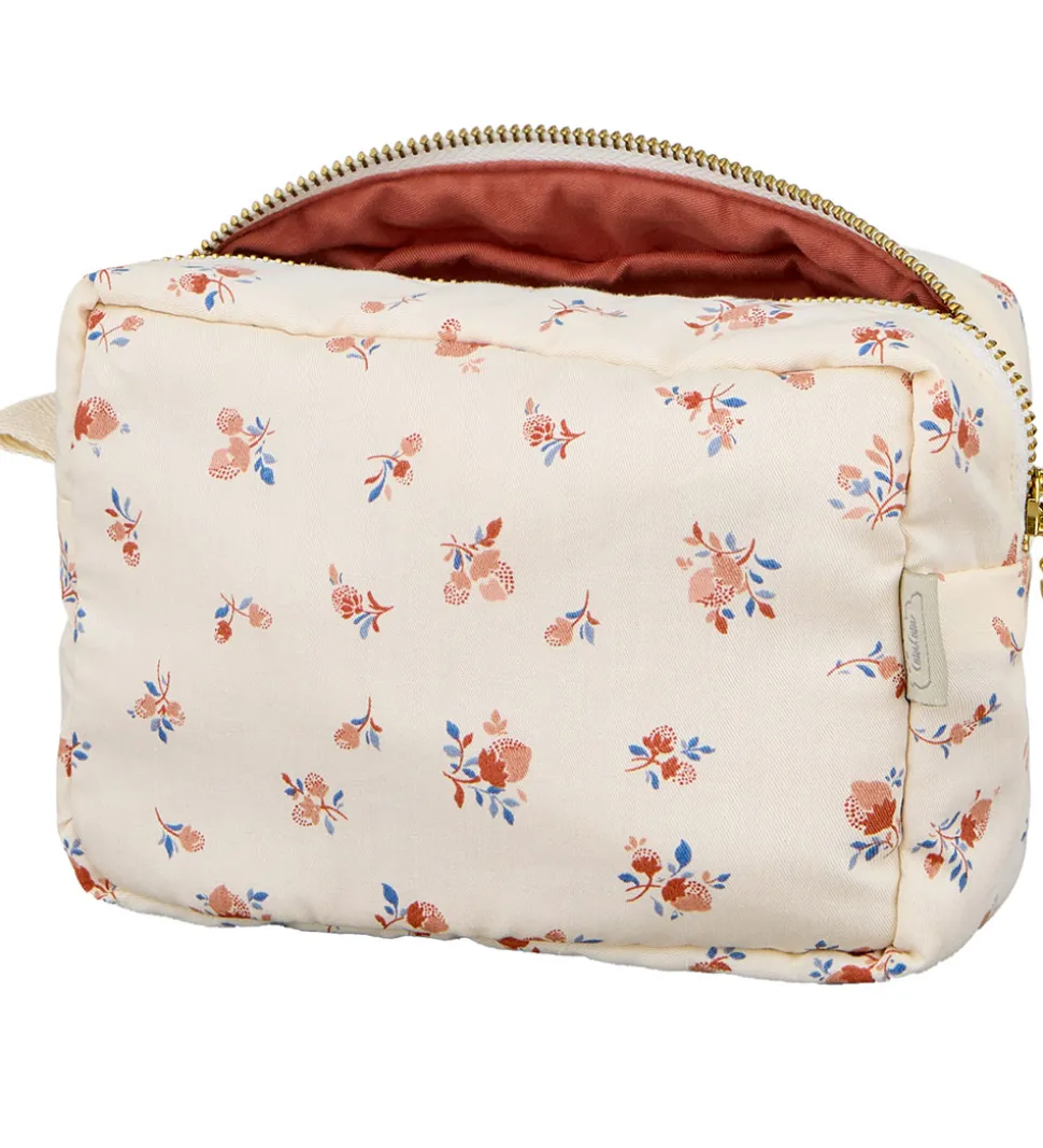 Cam Cam Copenhagen makeup pungen åbnes på toppen med en guldfarvet lynlås, og den består af ét stort rum med et brunt for. Makeup pungen har en beskyttende coating både indeni og udenpå, som gør den mere smuds- og vandafvisende.