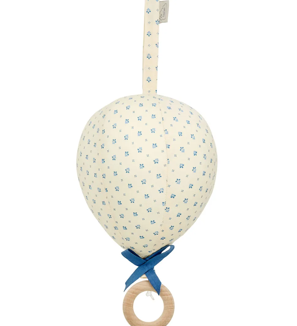 Cam Cam Copenhagen uroen har form som en luftballon med en sløjfe i bunden. På toppen er der en praktisk strop med velcro, så uroen er let at hænge op, og i bunden er der en flot træring. Trækker man let i snoren, spiller uroen en yndig melodi.