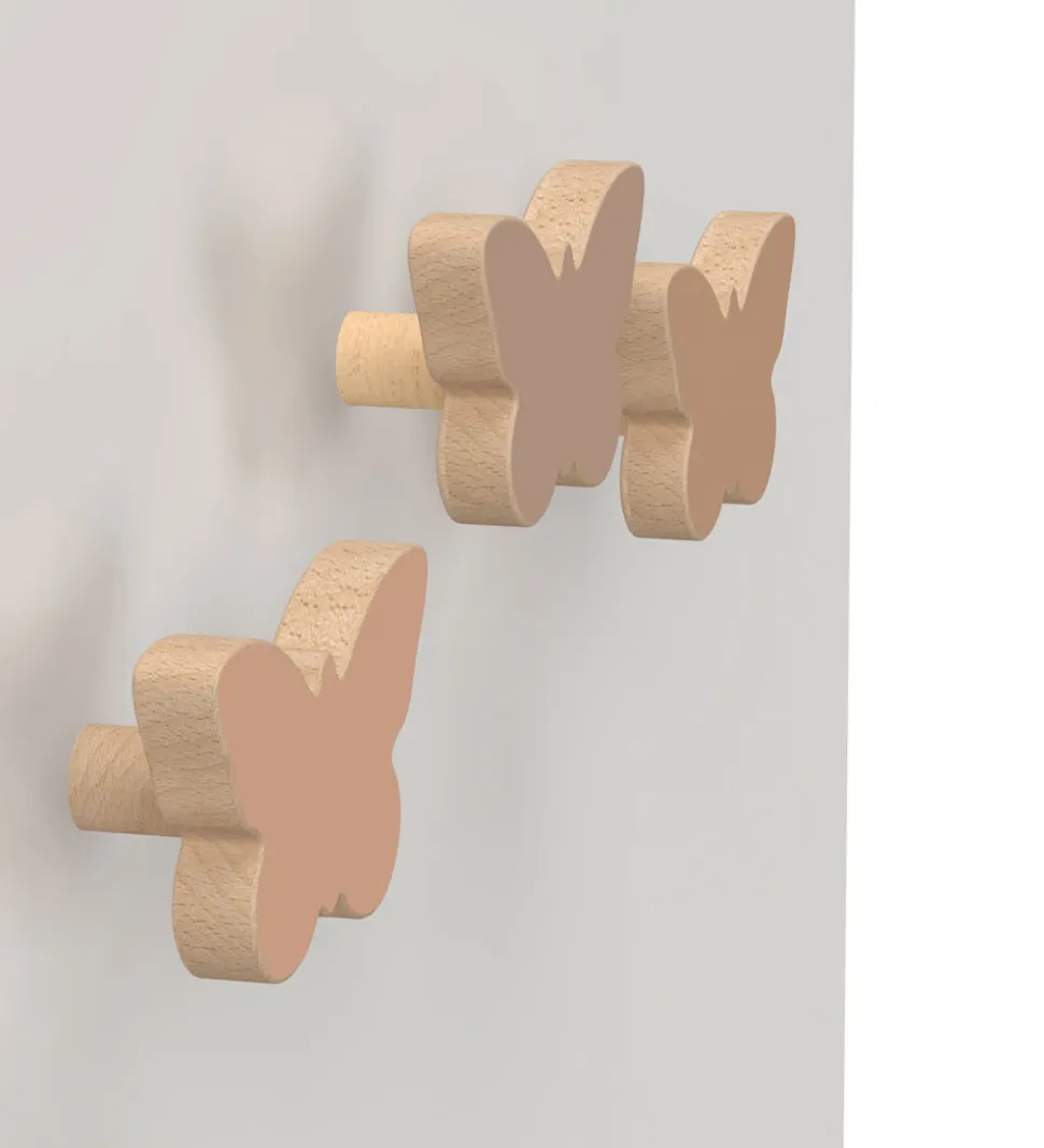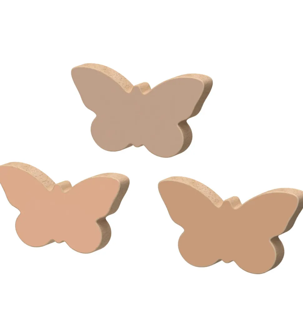 Flotte Cam Cam Copenhagen træknager solgt i en 3-pak med form som sommerfugle i rosa nuancer.