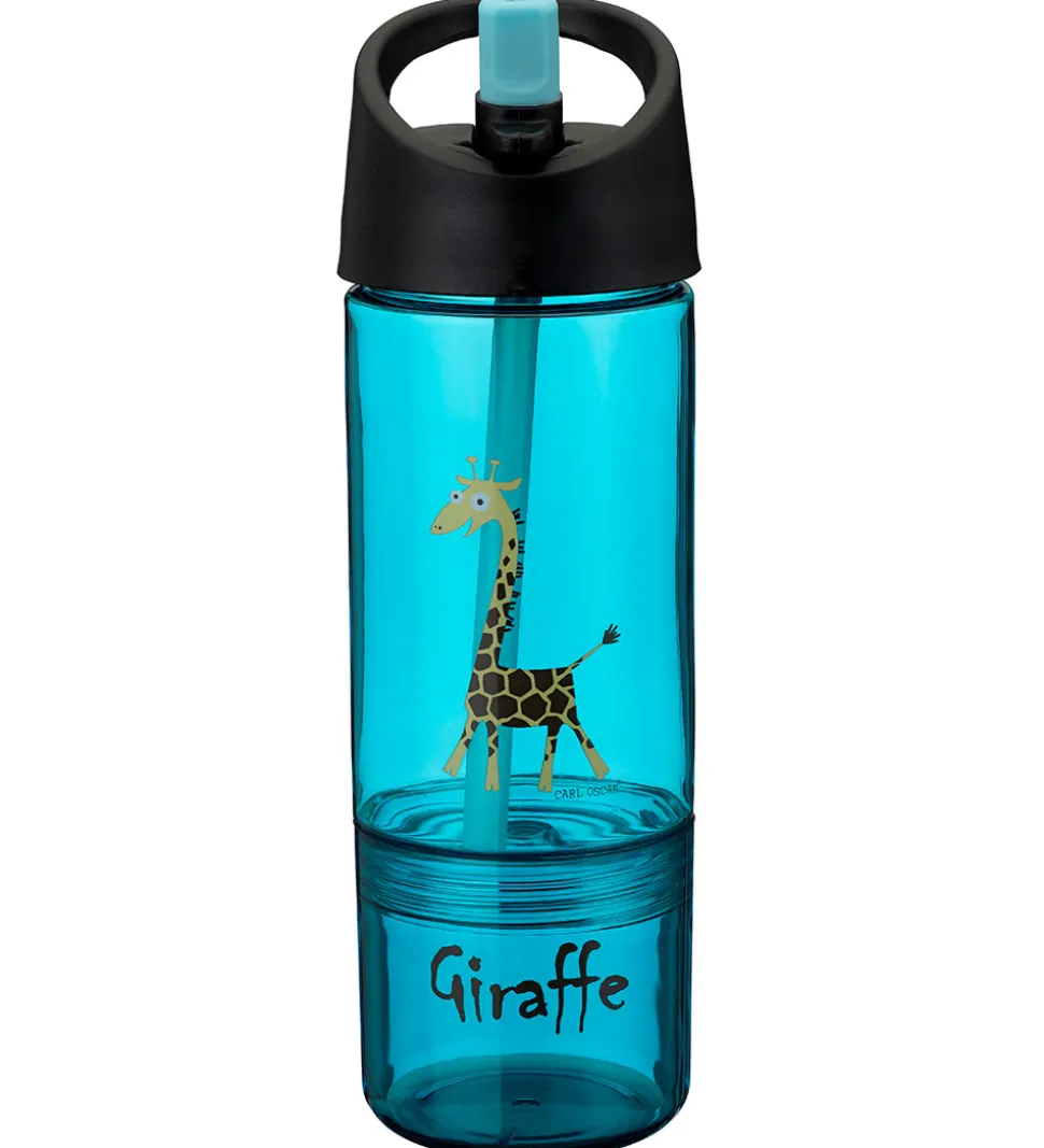 Sød Carl Oscar drikkedunk i transparent turkis med en sjov giraf.