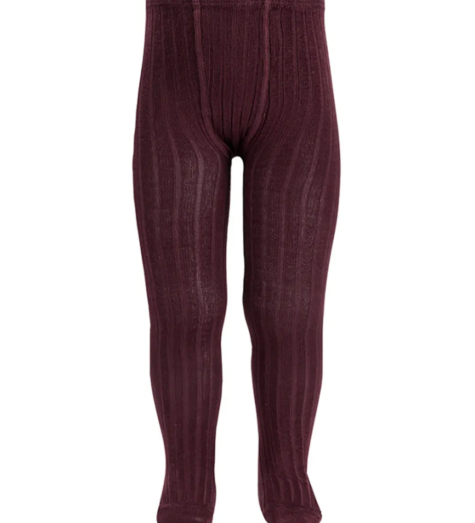 Elegante Condor strømpebukser i ensfarvet bordeauxrød med en flot ribstruktur. Strømpebukserne har en ensartet struktur og en elastisk talje, der sikrer en god pasform.