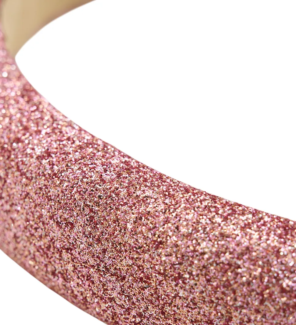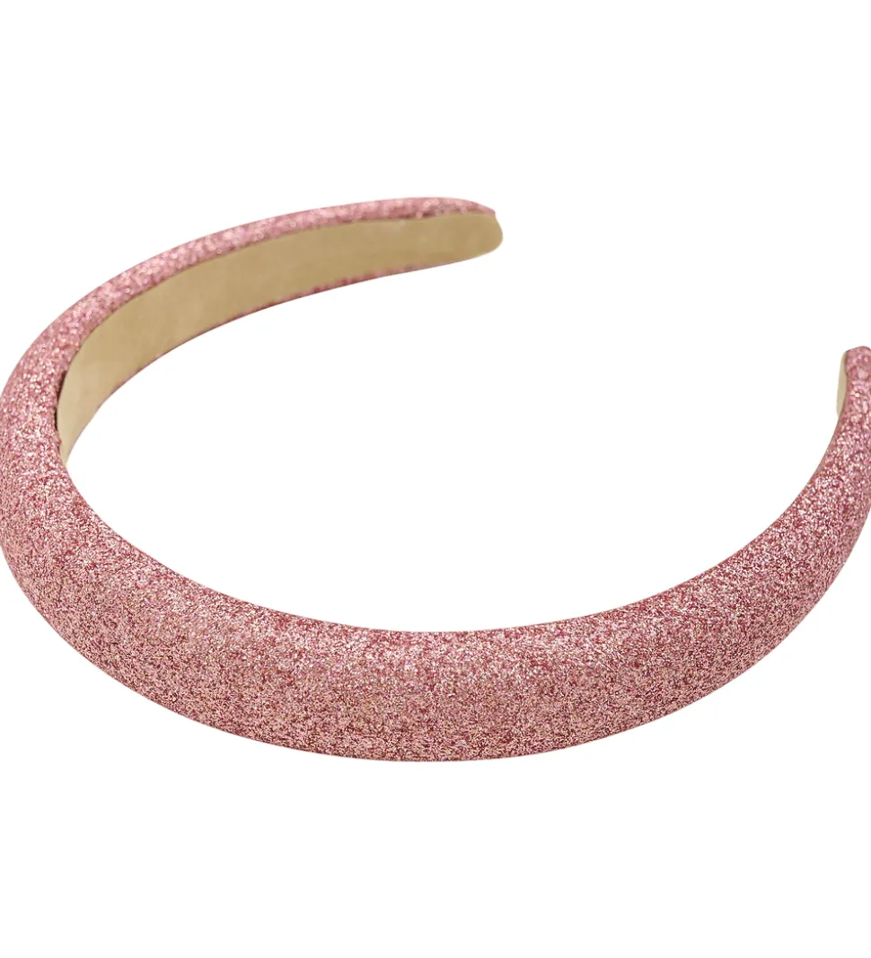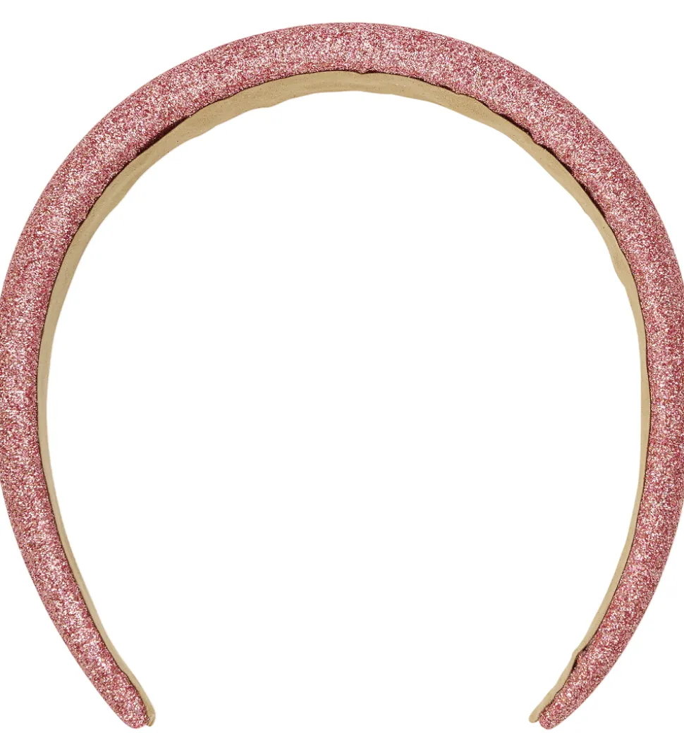 Stilfuld Creamie hårbøjle i skinnende rosaglimmer. Creamie hårbøjlen er designet med en enkel bue, der sidder komfortabelt på hovedet. Ideel til at tilføje et strejf af elegance.