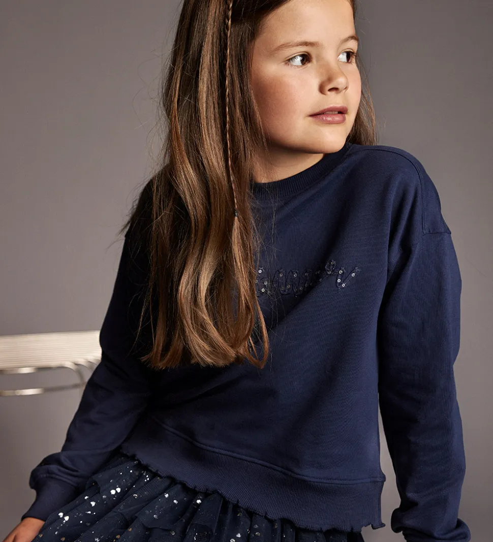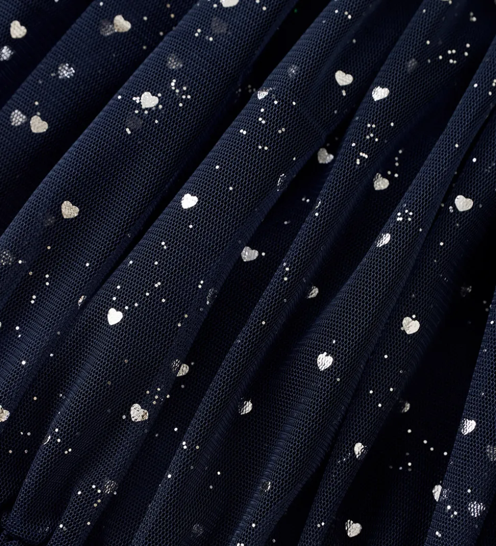 Elegant Creamie nederdel i en mørkeblå nuance med små, glitrende hjerter. Creamie nederdelen har en let og luftig skørtstruktur med elastisk kant i livet, hvilket giver en god pasform.