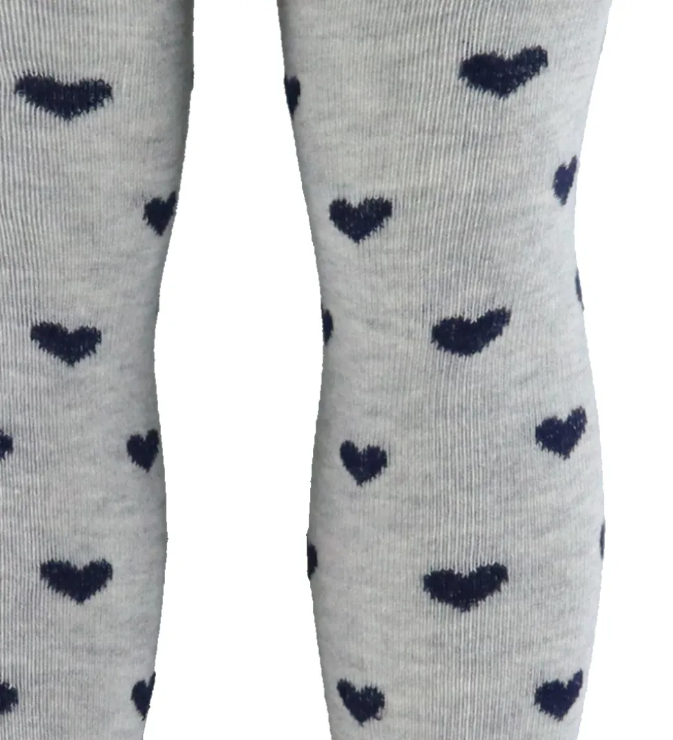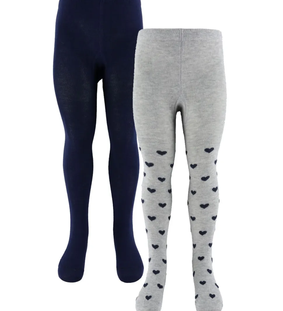 Praktiske Creamie strømpebukser i en 2-pak, der indeholder et par i ensfarvet mørkeblå og et par i meleret lysegrå med små, mørkeblå hjerter. Disse strømpebukser har elastik i livet for optimal pasform. Creamie strømpebukser er enkle og stilfulde.