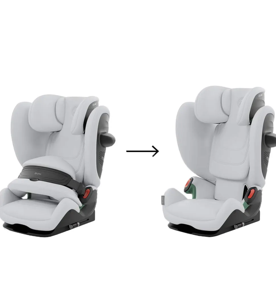 Når barnet er 105 cm eller vejer 21 kg, kan man fjerne puden. Stødpuden klikkes fast på autostolen med justerbare seler, så der altid er plads til barnet, i takt med at det vokser. Med en knap bagpå kan man nemt regulere højden på ryggen, så stolen vokser med barnet. Hovedstøtten kan desuden lænes lidt tilbage, så hovedet ligger i en beskyttende hvileposition