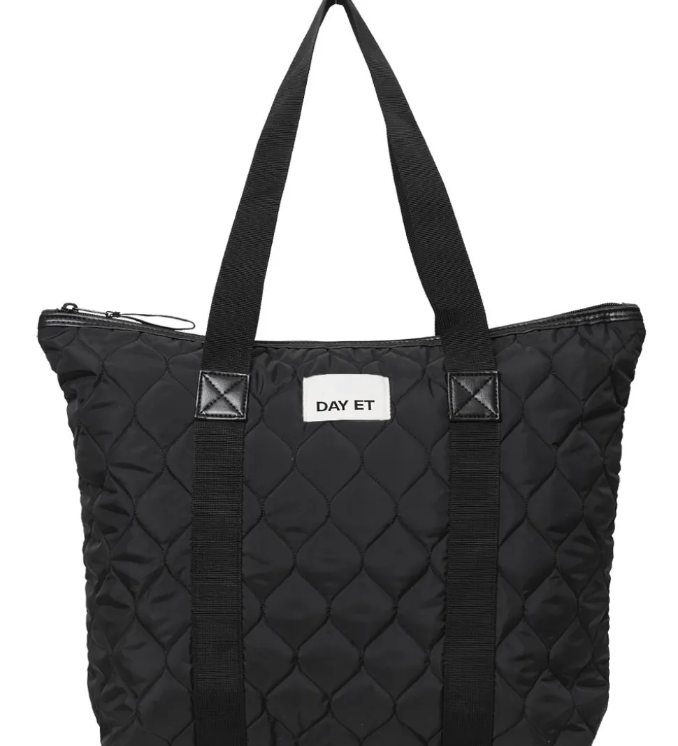 Flot DAY ET shopper i sort med en quiltet struktur og en hvid logoapplikation på fronten.