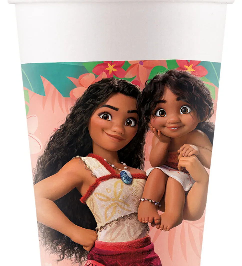 Charmerende Decorata Party papkrus i hvid med et flot motiv af karaktererne fra Moana. Decorata Party papkrusene er ideelle til farverige festligheder og bringer et strejf af eventyr til borddækningen.