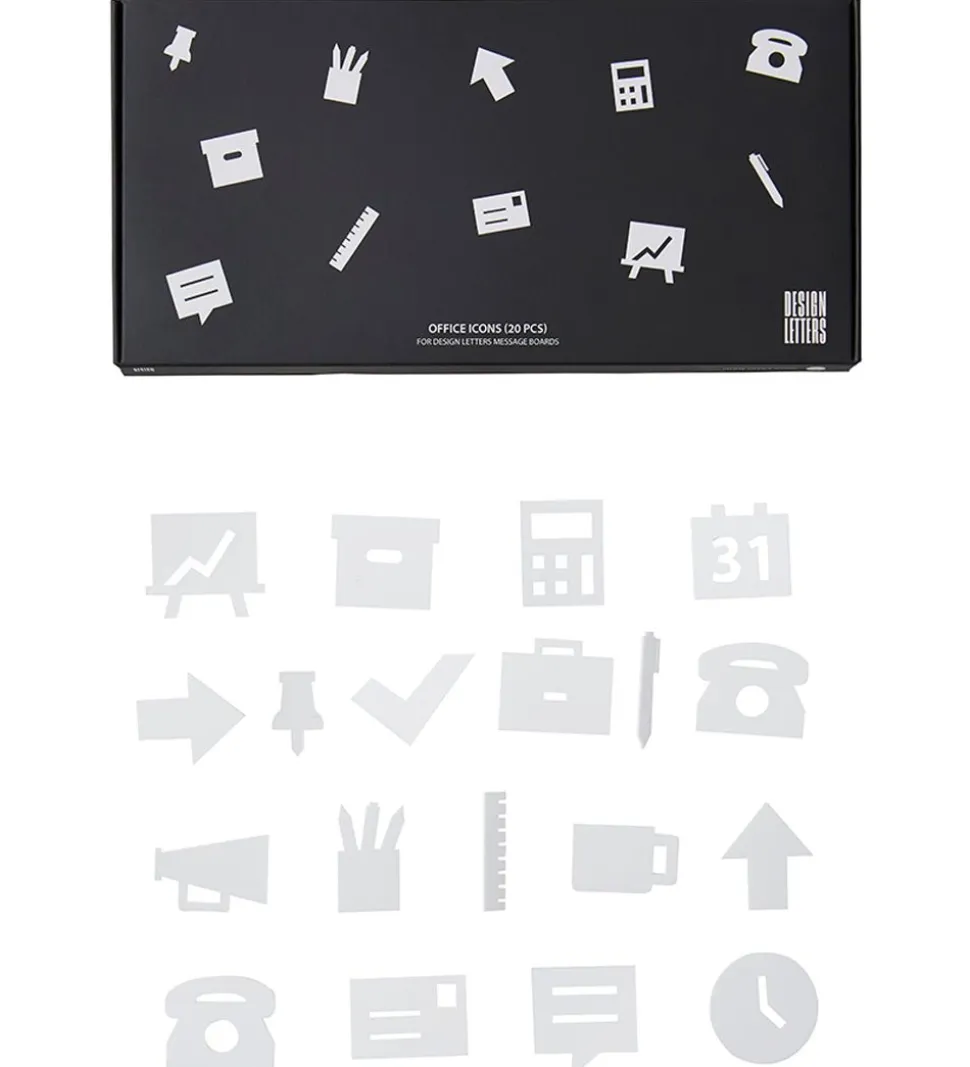 Design Letters ikonerne kan bruges til påmindelser eller som en unik dekoration på kontoret.