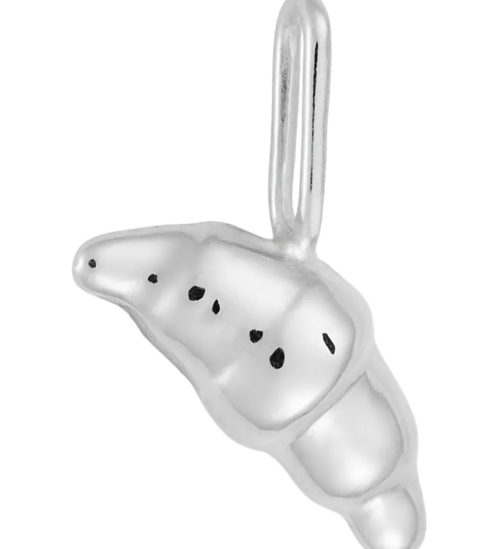 Sødt Design Letters vedhæng af genanvendt, sterling sølv med en croissant.