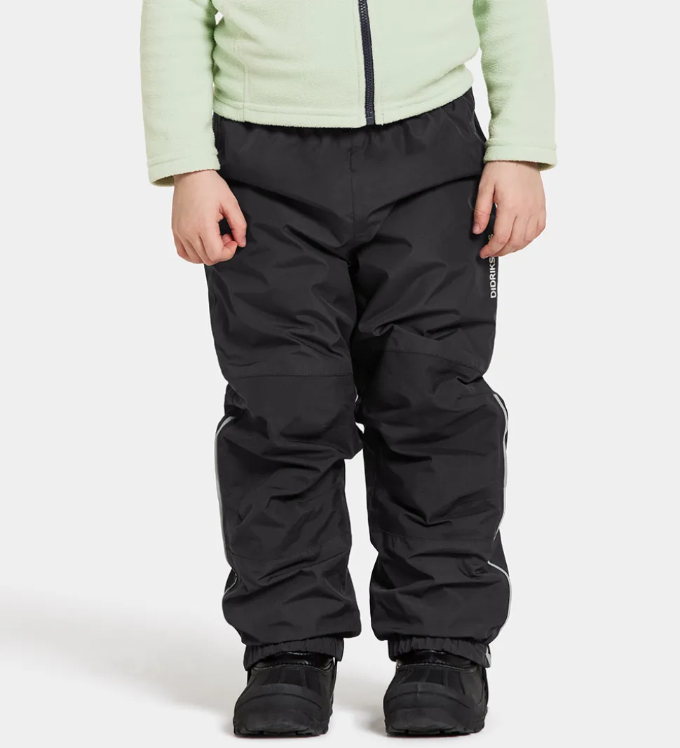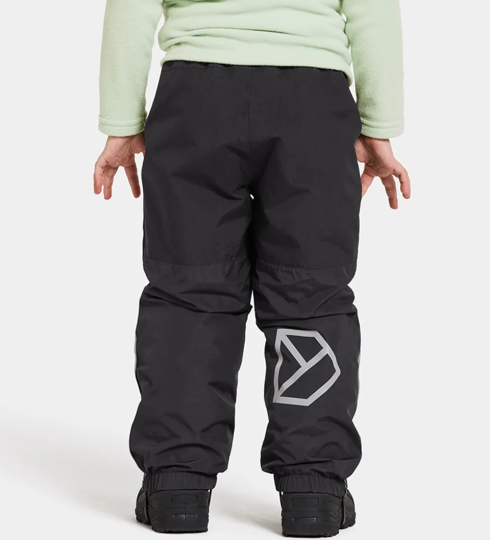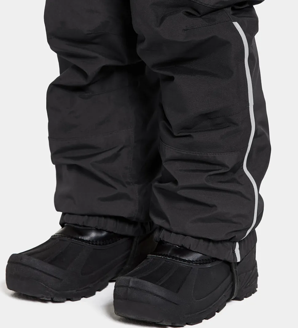 Flotte Didriksons skibukser i sort med broderet logo og refleksprint.
