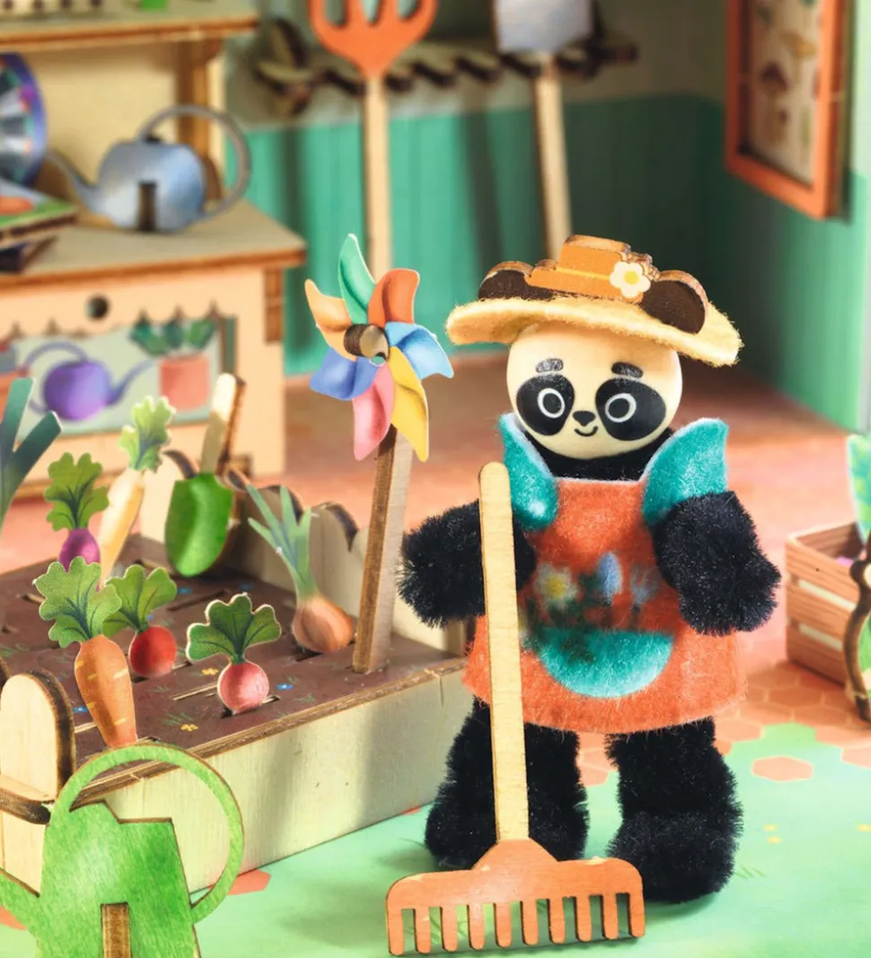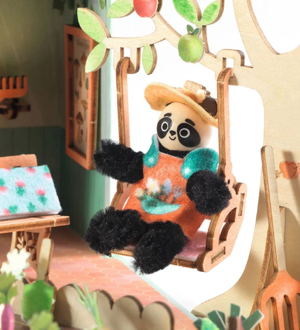 Djeco kreasættet indeholder et farverigt miniatureværelse med have som selv skal bygges fra bunden, og børn kan udfolde deres kreativitet og legelyst. Perfekt for dem, der elsker detaljer og skabelse.