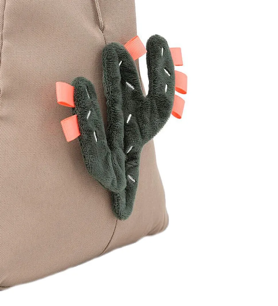 Stativet kan sagtens stå selv ved hjælp af sandsække, og kan nemt justeres i højde og længde samt placeres lige, hvor man ønsker det. På de indvendige sider er der også nogle sjove aktivitetsting: På den ene side er der et spejl og på den anden er der en kaktus med knitrende effekt og mærker, som kan udforskes.