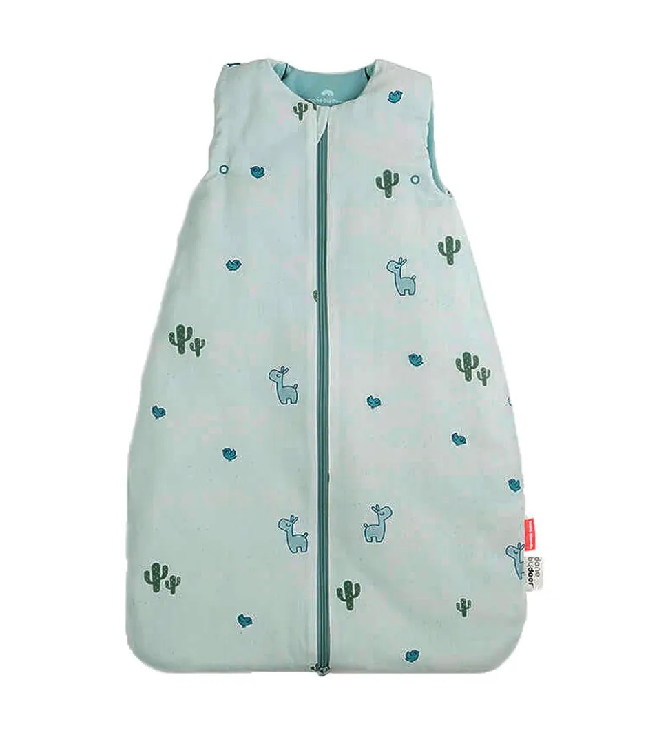 Fed Done by Deer sovepose i lyseblå, med lamaer, kaktusser og fugle i grønne og blå nuancer over det hele.