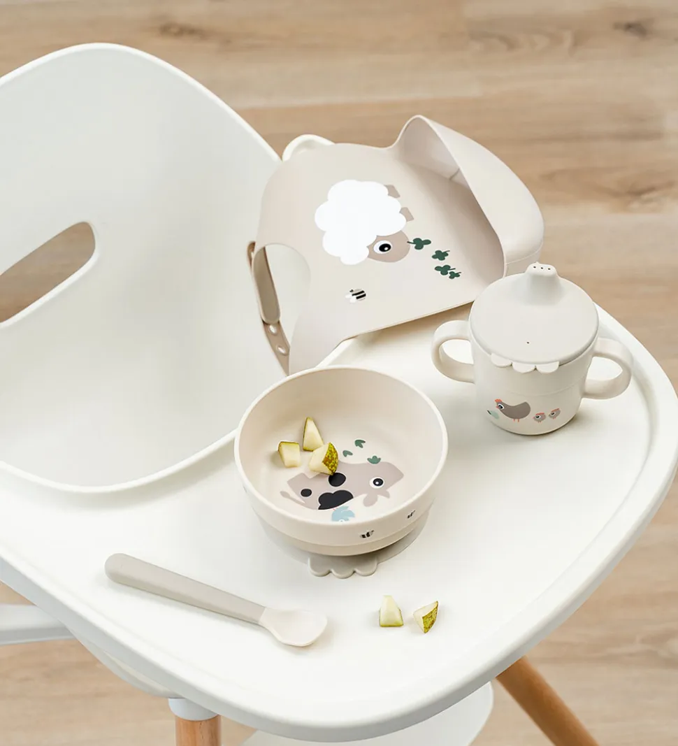Done by Deer spisesættet er ideelt som barnets første, da det står godt fast på bordet og i øvrigt er i blødt og behageligt PP og silikone.