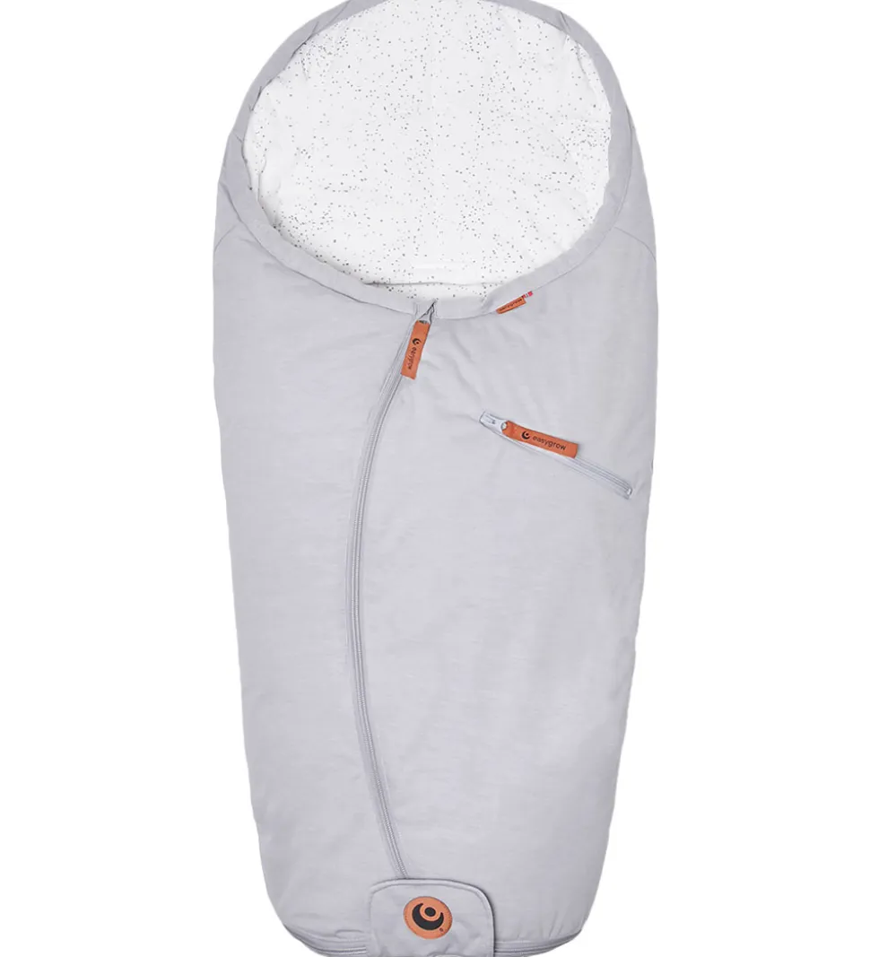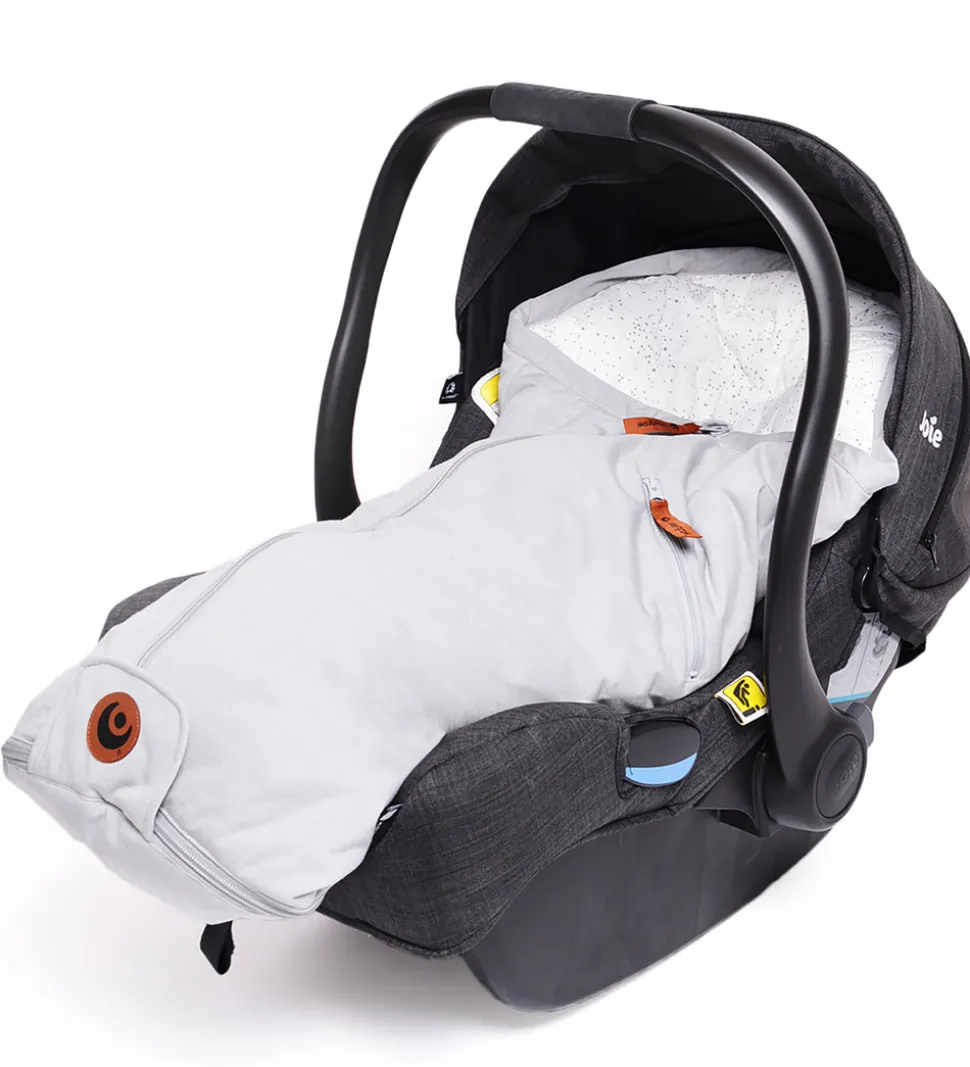 Smart Easygrow kørepose til autostol i en flot, grå farve udenpå og med et hvidt for med grå prikker indeni.