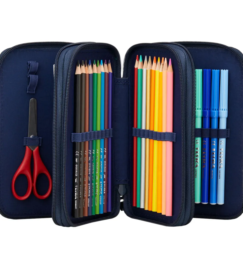 Ergobag penalhuset består af 3 dele, som hver åbnes med en lynlås og giver adgang til massevis af tilbehør i god kvalitet fra Lyra.
