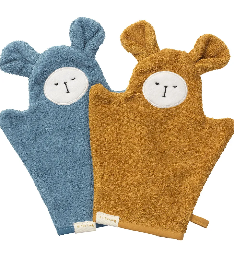 Praktiske Fabelab badehandsker solgt i en 2-pak med følgende farver: