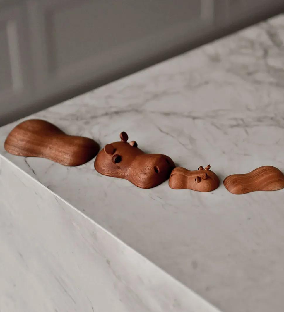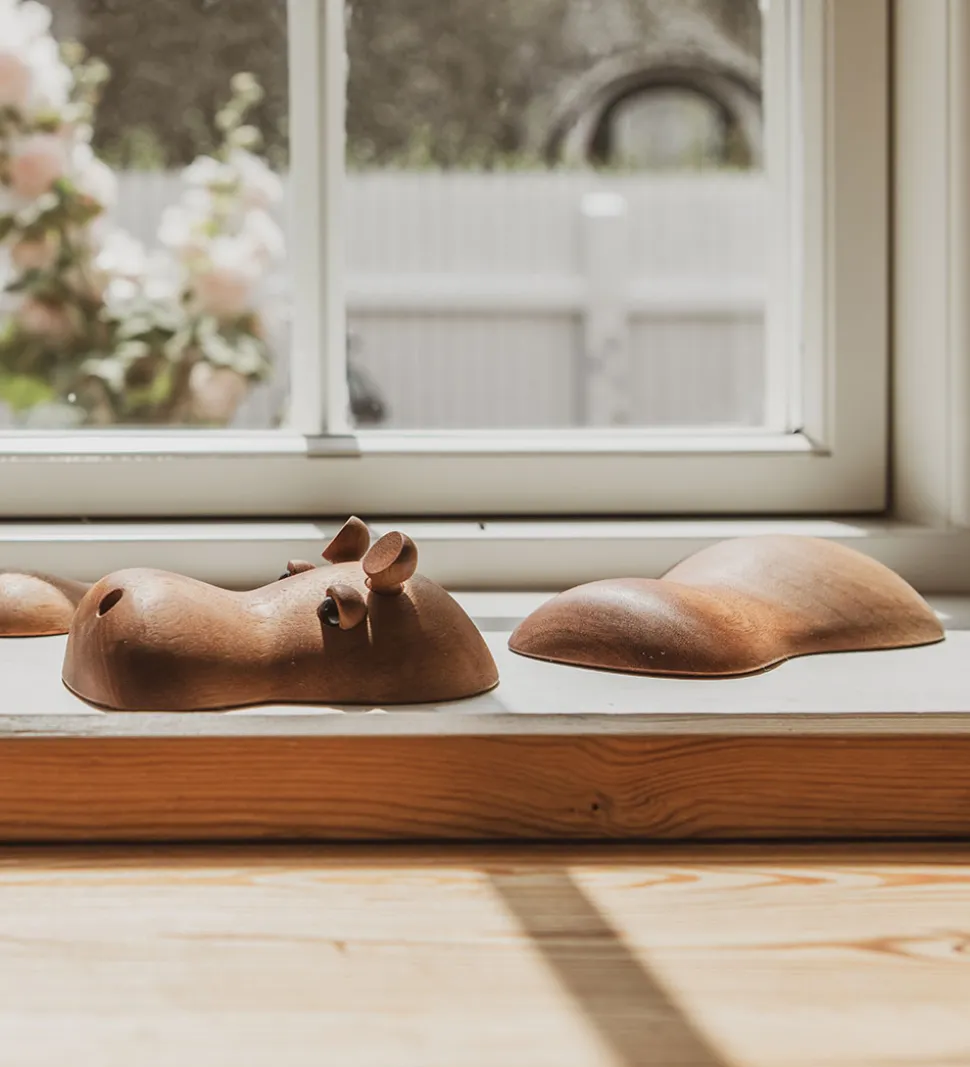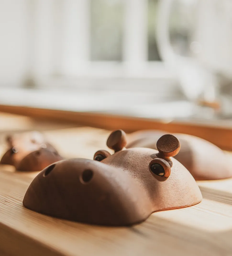 Sød FableWood dekoration i træ. Dekorationen er formet som flodhesten, Rosa.