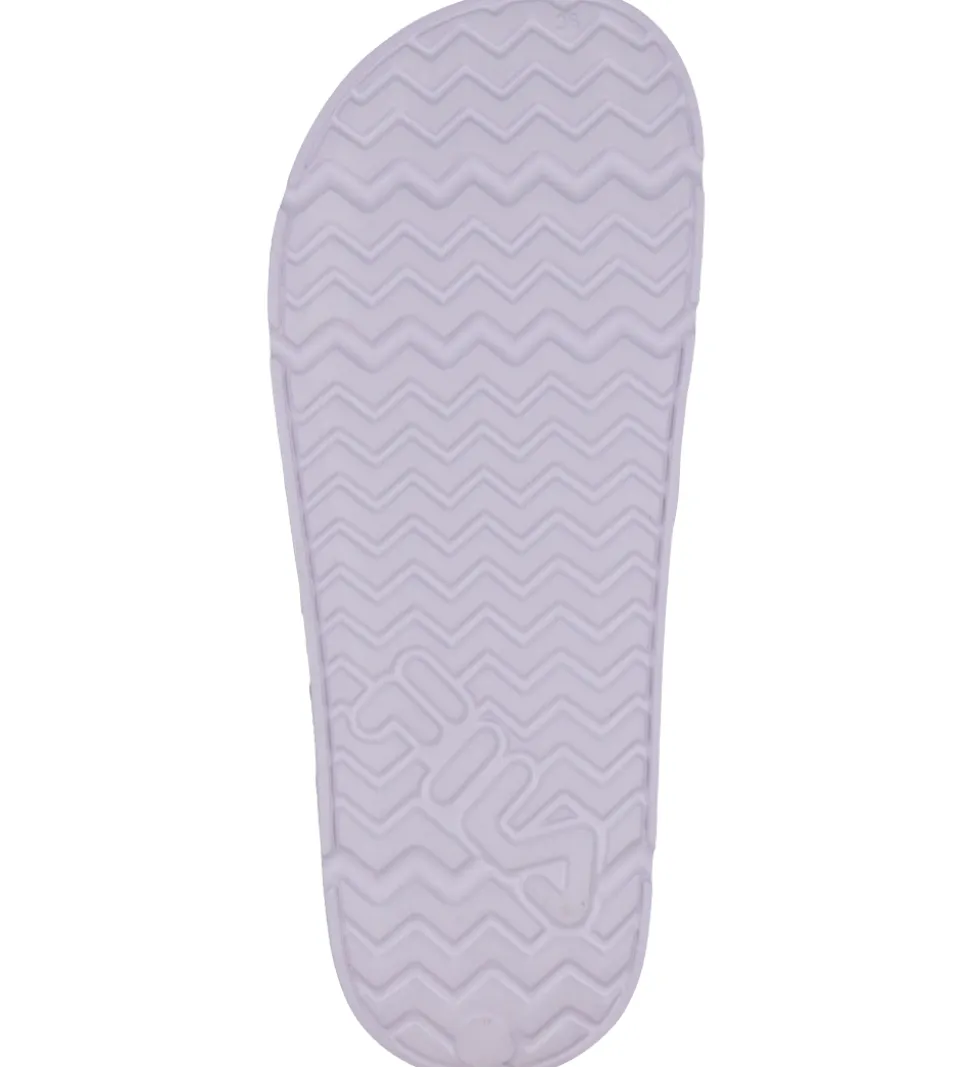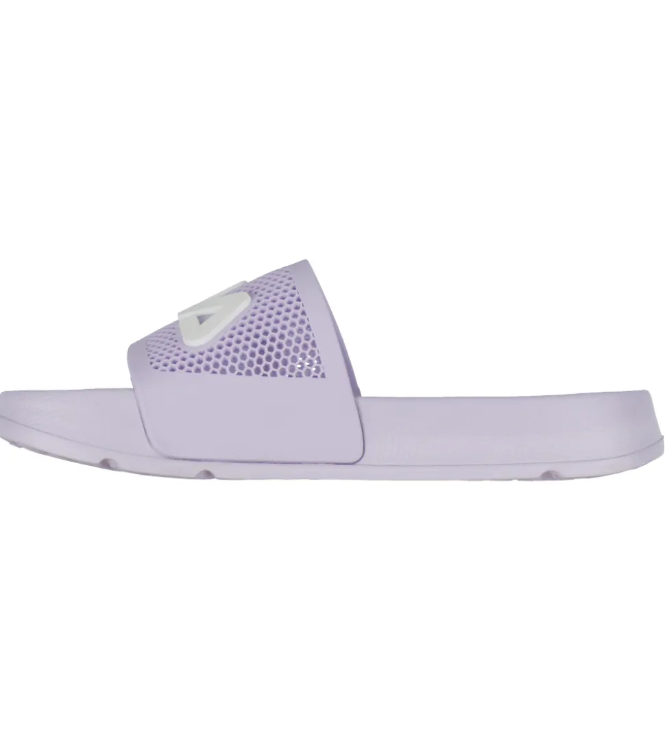 Smarte Fila badesandaler i lys lilla med et stort 3D-logoprint i hvid og rød.