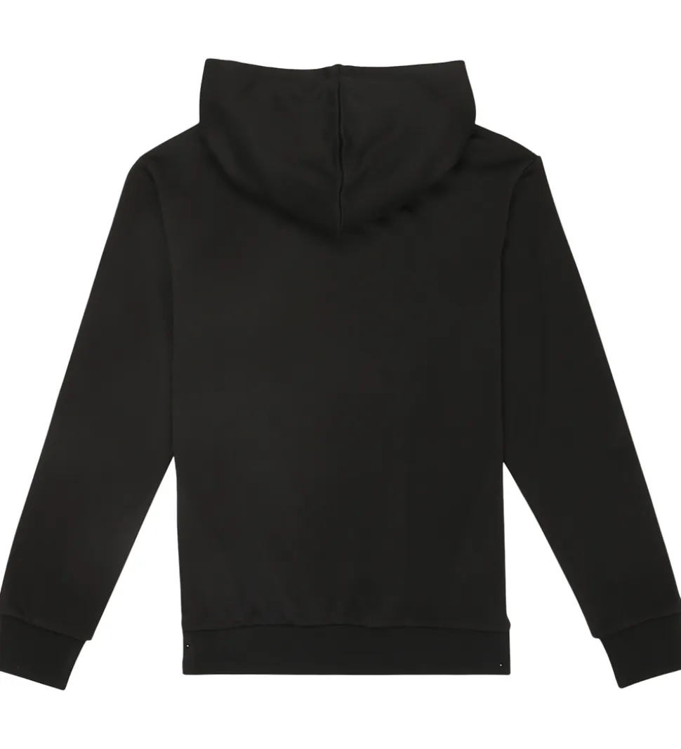 Elegant Fila hættetrøje i en klassisk, sort farve. Hættetrøjen har et iøjnefaldende Fila-logo på fronten i hvid og rød med teksten “EST. 1911”. Fila hættetrøjen har en blød ribkant ved manchetterne og livet samt en rummelig hætte, der fuldender designet.