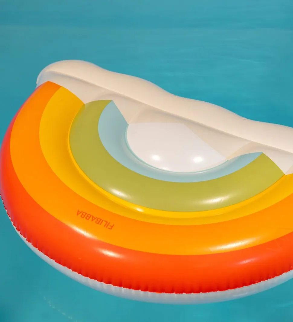 Sjov Filibabba bademadras med form som en regnbue i fine nuancer.