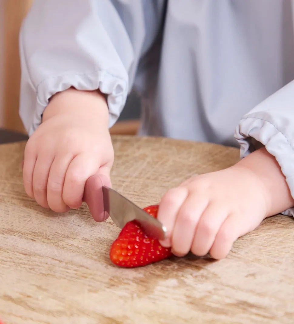Filibabba knivene er i rustfri stål og silikone, så de ligger godt i barnets hånd, og der er en sikkerhedsbarriere mellem klingen og fingrene. Knivene er beregnet til frugt og grøntsager. Knivene kan kommes i opvaskemaskinen.