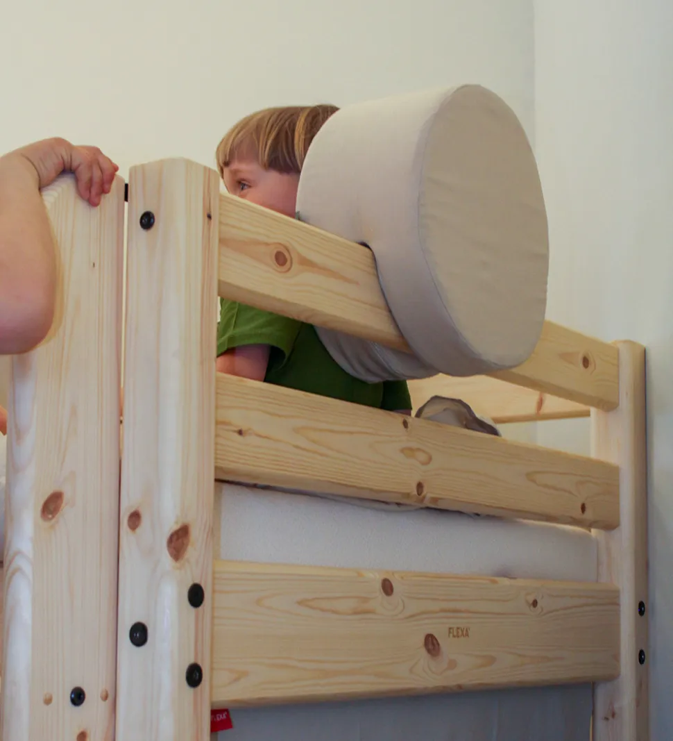 Flexa rygstøtten har en rund udformning og er i et smart design, så den kan sættes direkte på f.eks. dit barn sengegærde og agere rygstøtte, når der læses. Rygstøtten kan også bruges som et sjovt tumlelegetøj.
