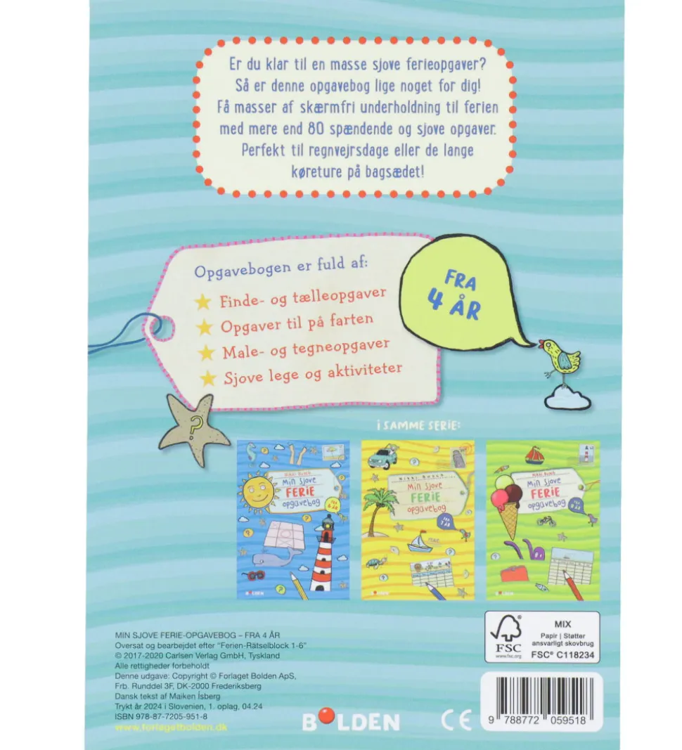 Spændende Forlaget Bolden aktivitetsbog, “Min Sjove Ferie Opgavebog”.