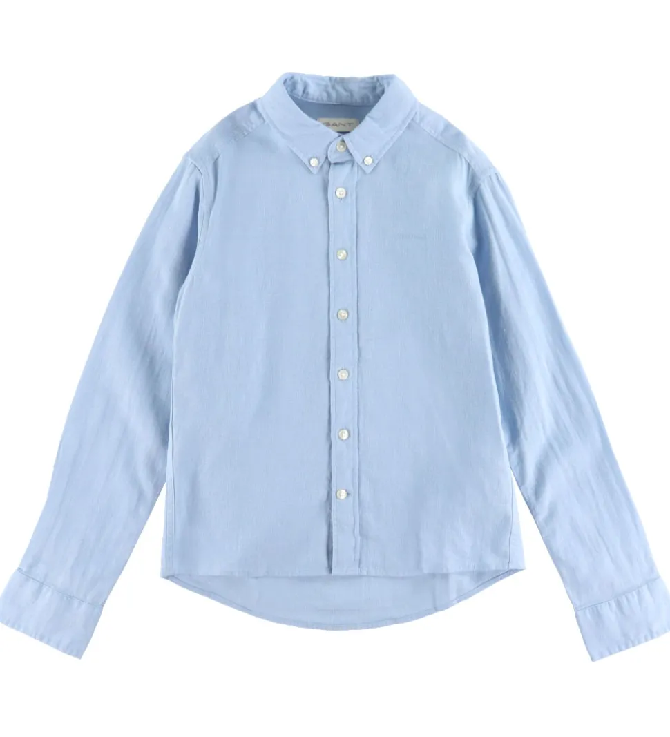 Flot GANT skjorte med lange ærmer i en lys blå farve. GANT skjorten har en klassisk krave og en gennemgående knaplukning foran, der giver et stilfuldt udtryk til enhver garderobe.