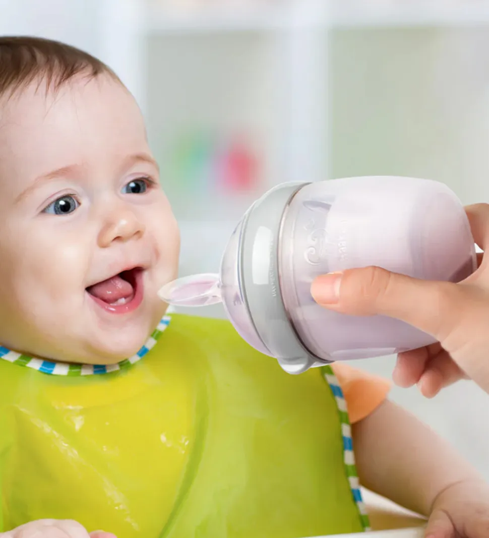 Haakaa sutteflaskens smarte ske-flaskesut gør den god til mad som grød og smoothie. Den er af fødevaregodkendt silikone, som er fri for BPA, PVC og ftalater. Sutteflasken tåler at blive steriliseret i kogende vand samt at komme i mikrobølgeovnen og opvaskemaskinen.
