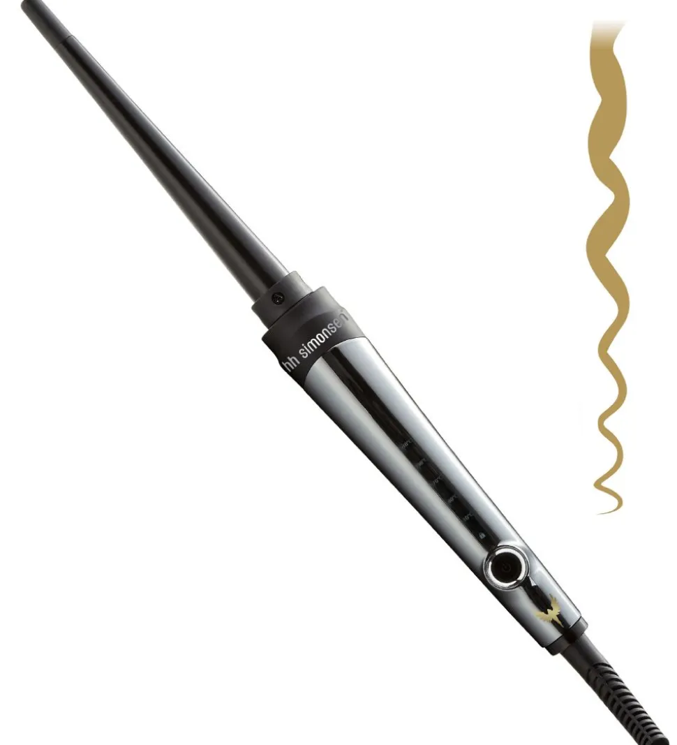 Lækkert HH Simonsen krøllejern i sort med blanke detaljer.