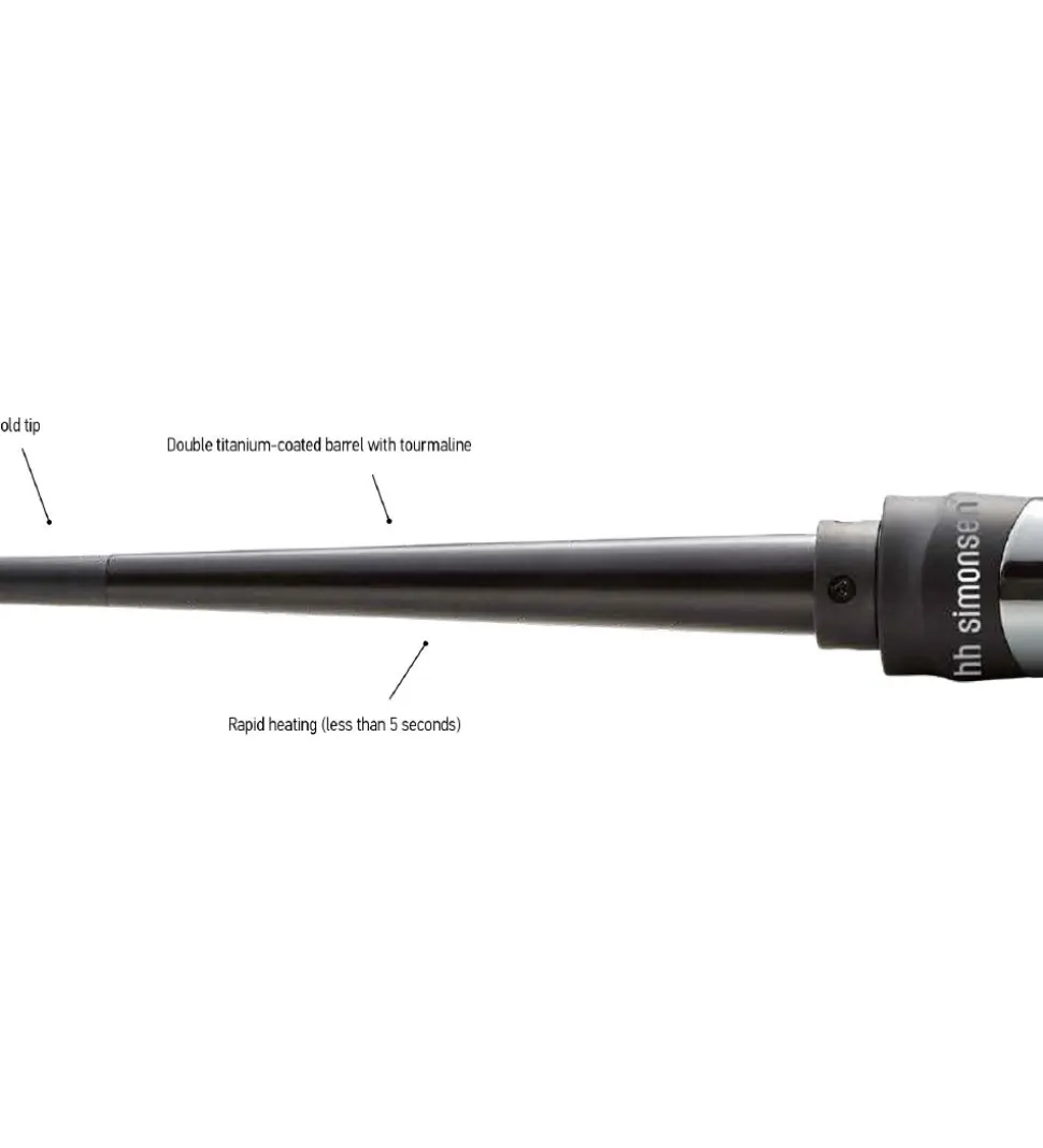 Krøllejernet har en praktisk “cold-tip” forenden, som sikrer en sikker og komfortabel styling uden forbrændinger af fingerene. Der medfølger desuden en praktisk handske og en varmebeskyttende pose, hvor HH Simonsen krøllejernet kan opbevares umiddelbart efter brug. Krøllejernet har en praktisk plastik-fod under bunden, så den kan stå selv under samt efter brug.