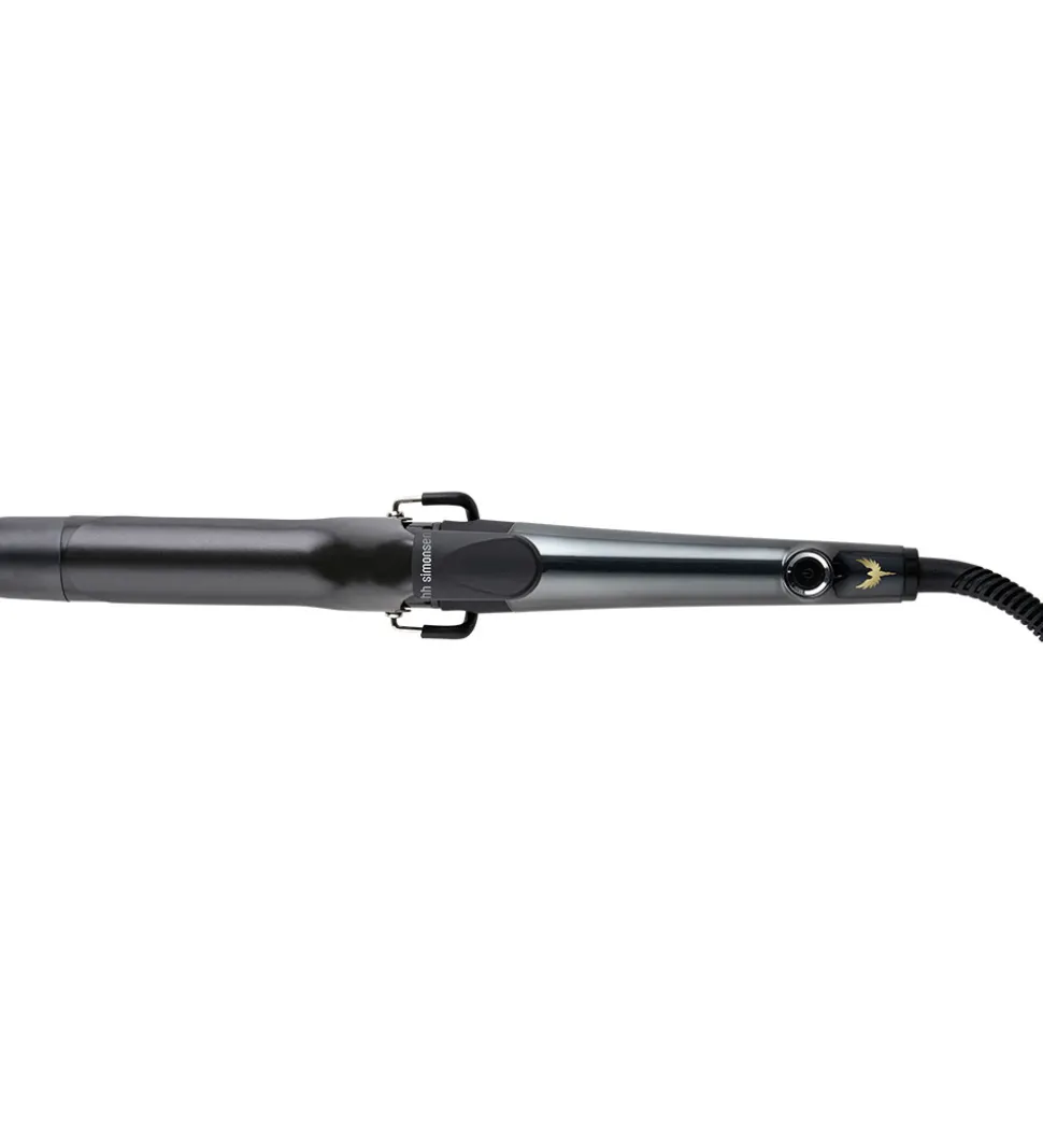 Fint HH Simonsen krøllejern i modellen ROD VS7, som er i et sort design med logoer.