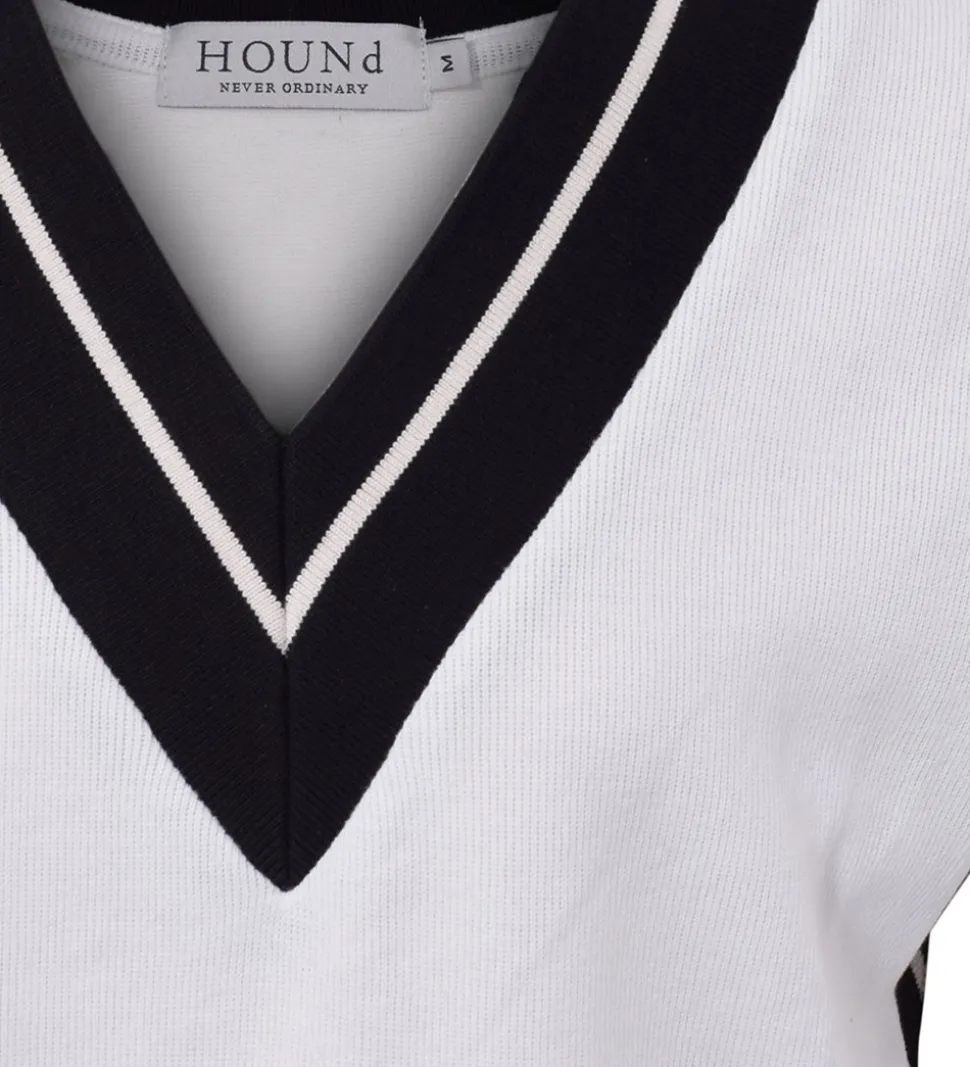 Flot Hound vest i hvid med navy striber langs kanterne.
