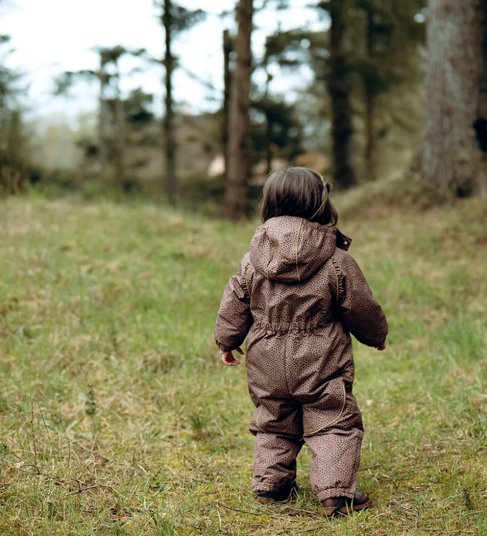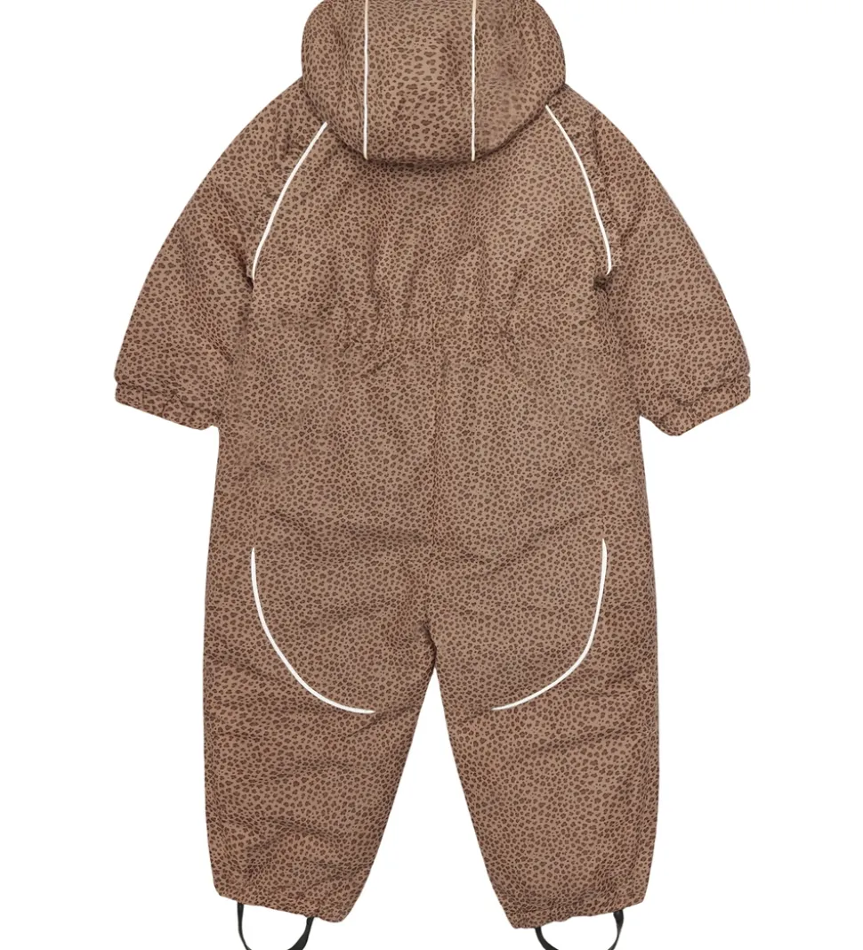 Pæn Hust and Claire flyverdragt med leopardprint i brune nunacer. Flyverdragten har fine rynkedetaljer fortil og også praktiske reflekspipings.