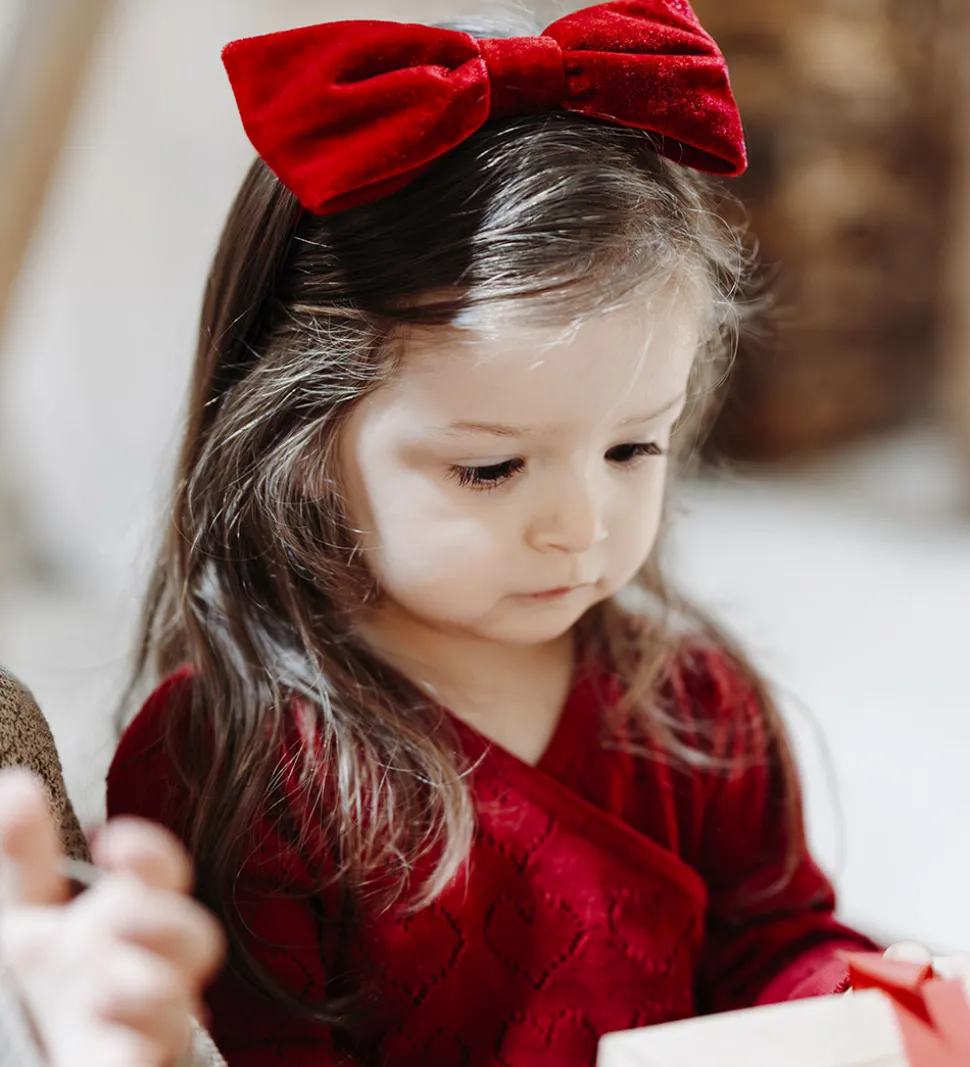 Elegant Hust and Claire hårbøjle i en dyb bordeaux nuance. Hårbøjlen er lavet af flot velour, og i toppen sidder der en stor sløjfe.