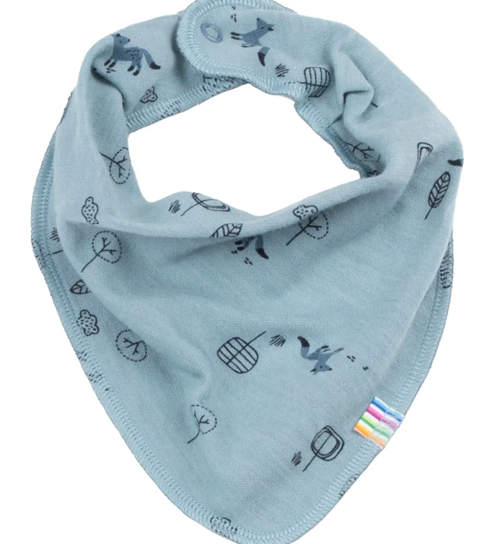 Flot Joha savlesmæk i lyseblå med et sødt print af ræve, træer og blade i mørkeblå nuancer.