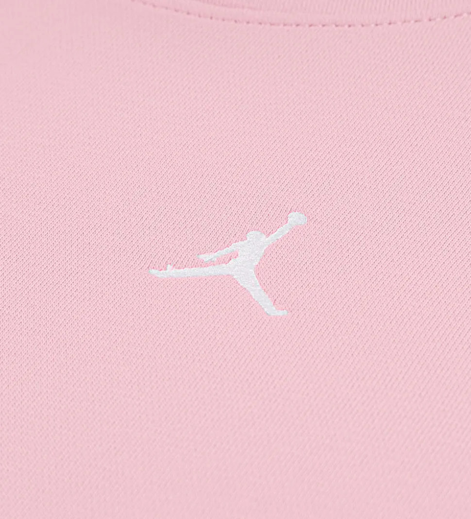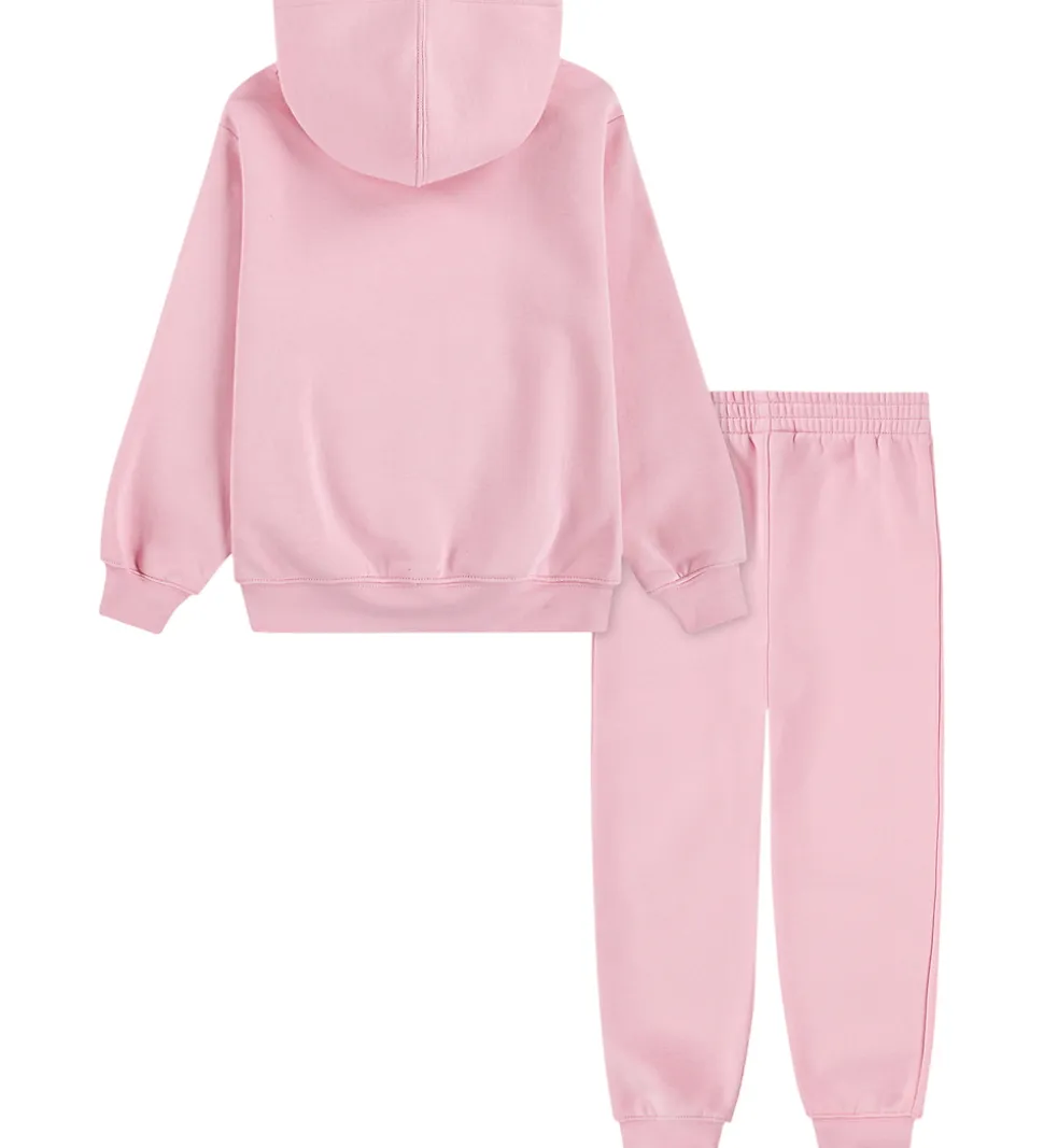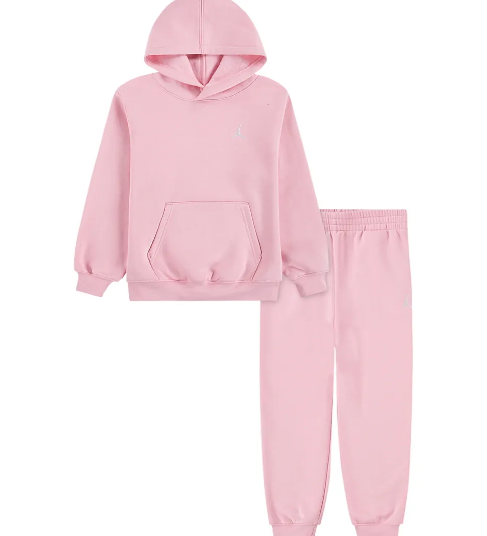 Fint Jordan sweatsæt bestående af en hættetrøje og et par sweatpants i rosa med det karakteristiske logo broderet i hvid.