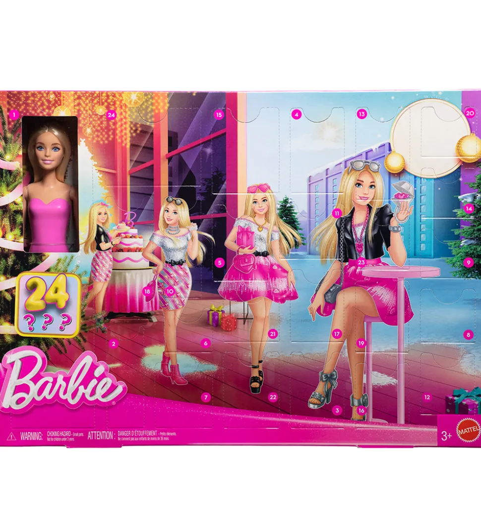Skøn julekalender med Barbie-tema. Julekalenderen indeholder én barbiedukke samt spændende tilbehørsoverraskelser bag hver låge, som vil glæde børn gennem hele december måned.