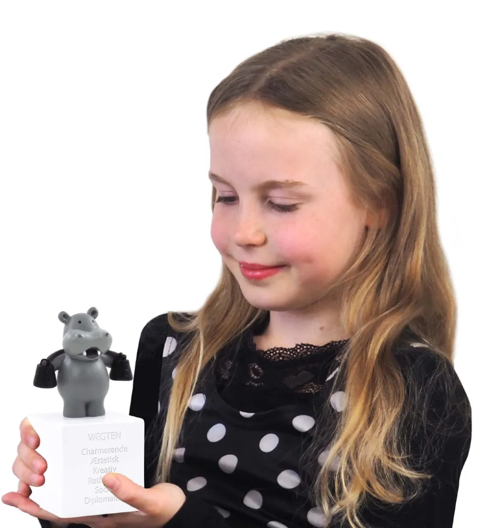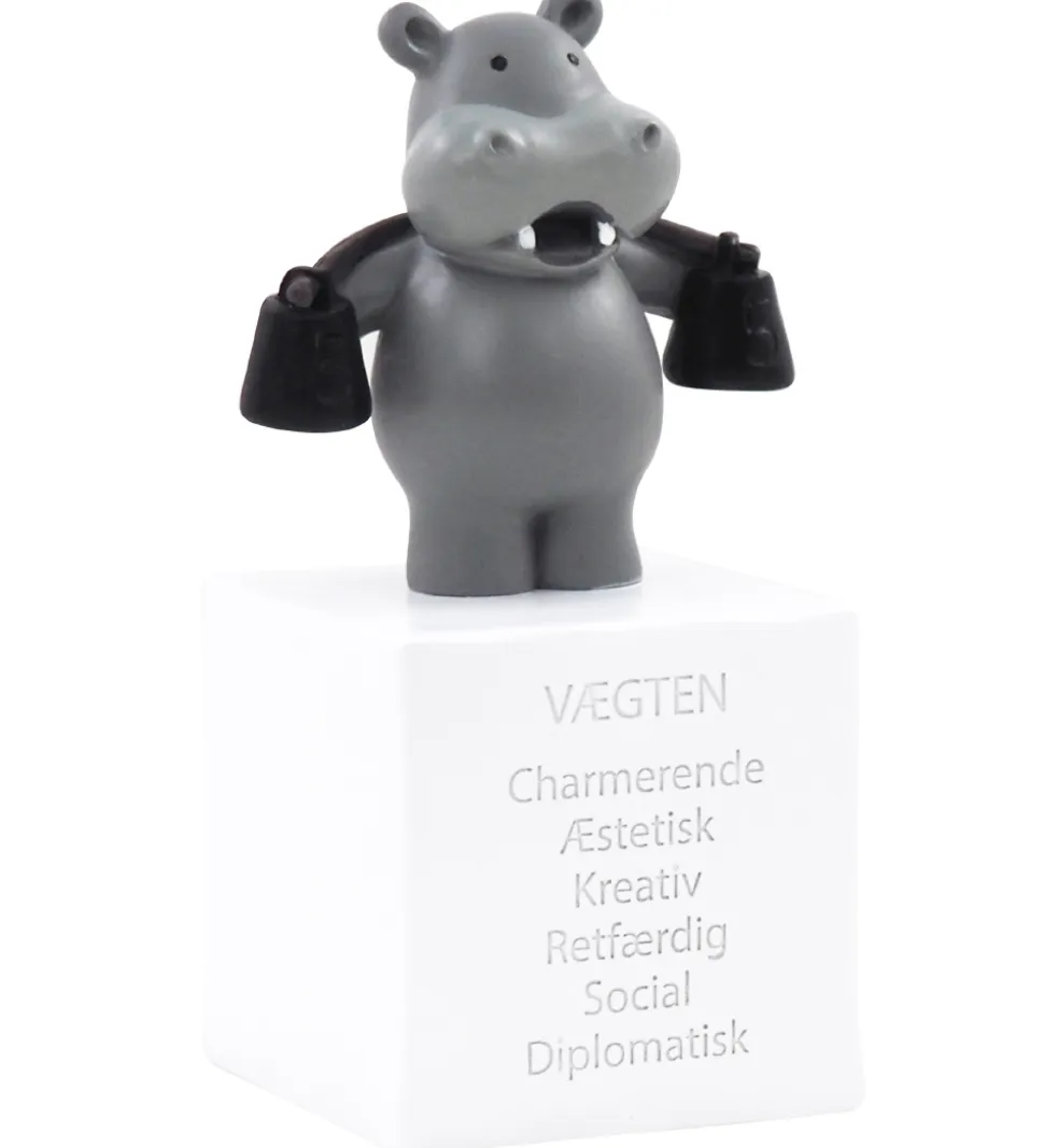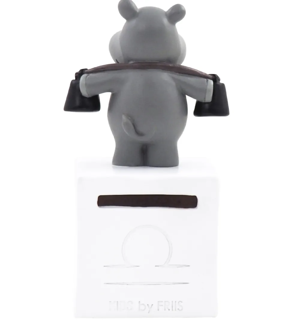 Skøn Kids by Friis sparebøsse med stjernetegnet Vægten. Der er en sød figur, som skal illustrere stjernetegnet, oven på selve sparebøssen, der er udformet som en hvid kube.