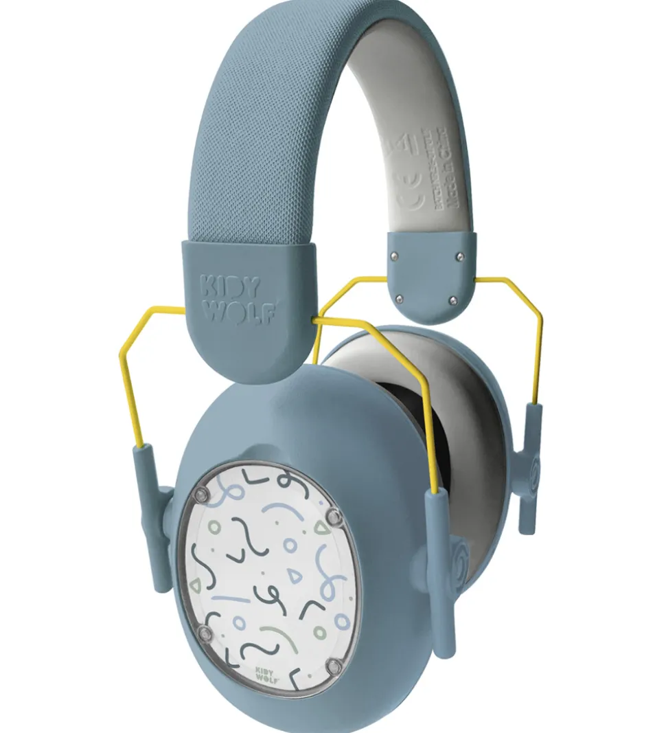Skønne Kidywolf høreværn i modellen Kidynoise med et blåt design.