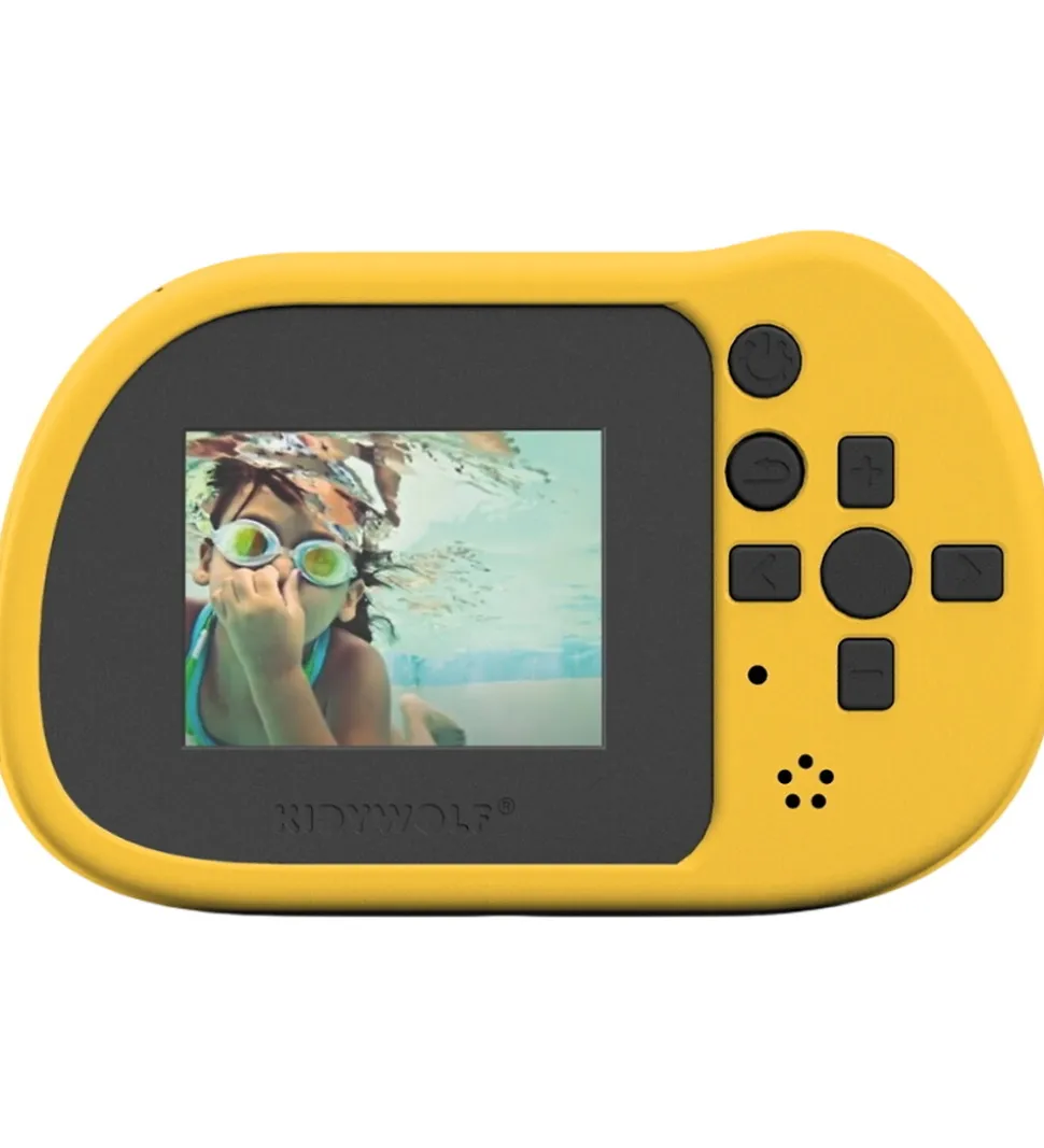 Kidywolf kameraet er forstærket med silikone, som sikrer at man har et godt greb og at det er vandtæt ned til en meter. Kameraet har en god skærm på den ene side og har også blitz. Kameraet er ideelt at have med på turen til f.eks. skoven, stranden eller lignende. Kameraet kan både tage billeder og video.