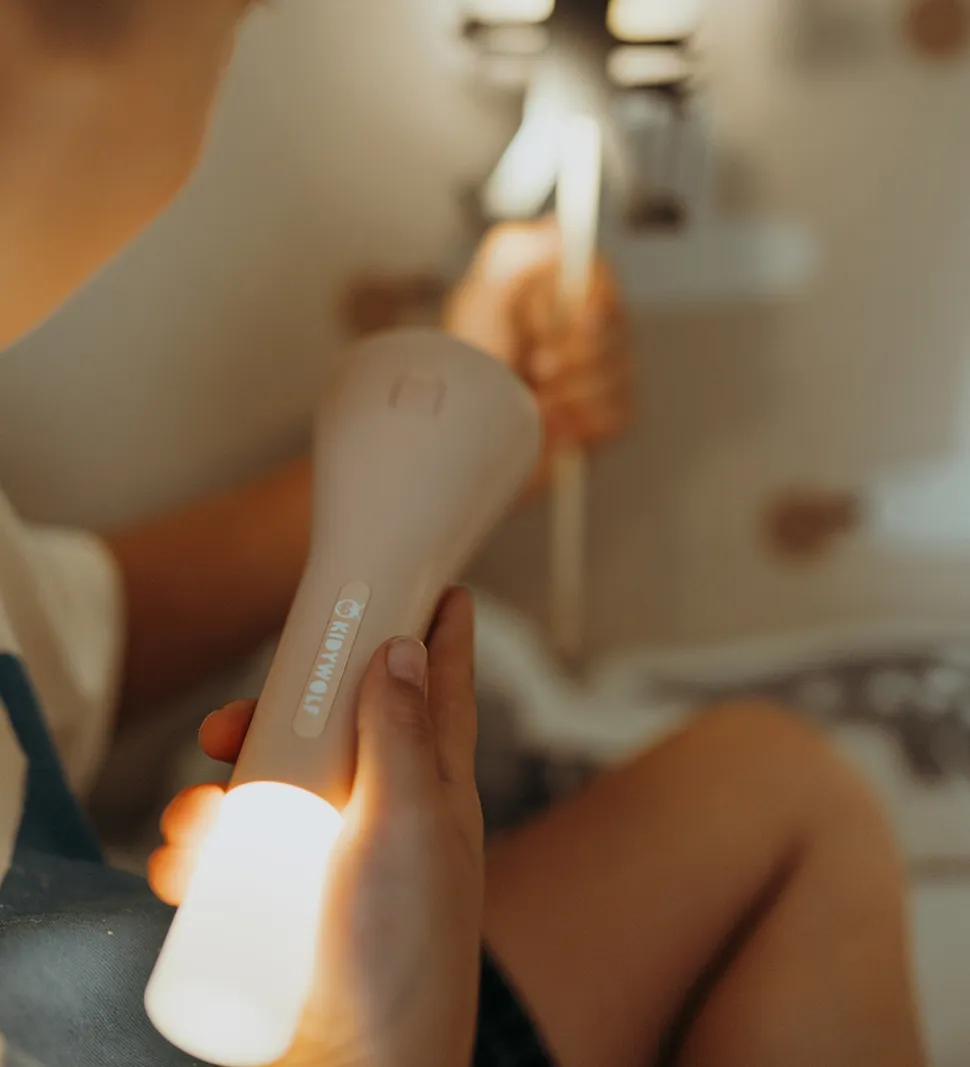 Kidywolf lommelygten kommer med 3 forskellige funktioner, samt 3 forskellige lysstyrker på 100, 60- og 20%. Den kan både bruges som en almindelig lommelygte, en stående lampe, og så har den en hank så man kan hænge lommelygten op og bruge den som lampe. Lommelygten har et funktionelt design, der gør det nemt at bruge til leg og eventyr.