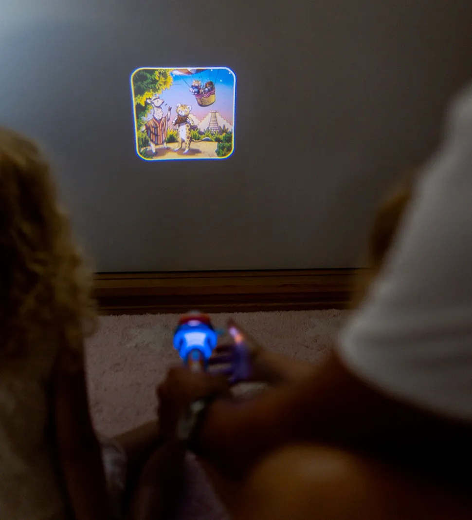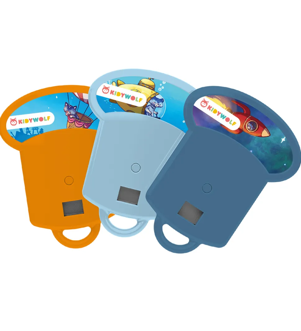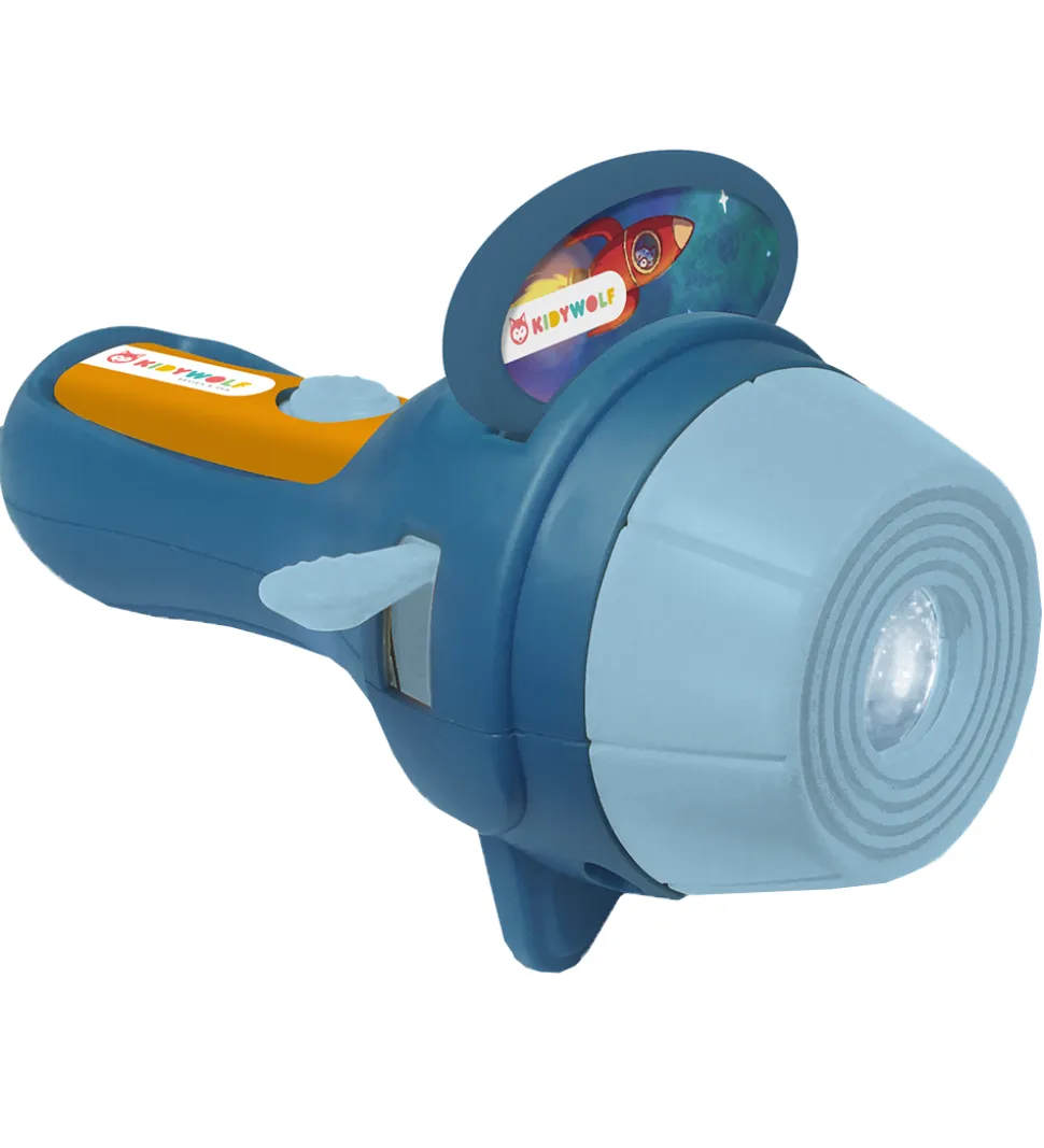 Kidywolf lommelygten fungerer som en projektor, som viser en historie på en hvid overflade. De medfølgende historier består af en plastikdisk, som sættes ind i lommelygten. Hver historie består af otte billeder og lommelygten er den perfekte måde at afslutte dagen.