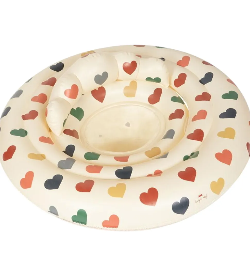 Skøn Konges Sløjd babybadering i blød beige med print af hjerter i forskellige nuancer.