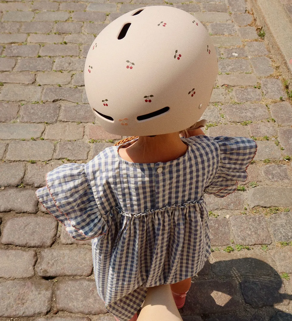 Sej Konges Sløjd cykelhjelm i rosa med print af kirsebær.