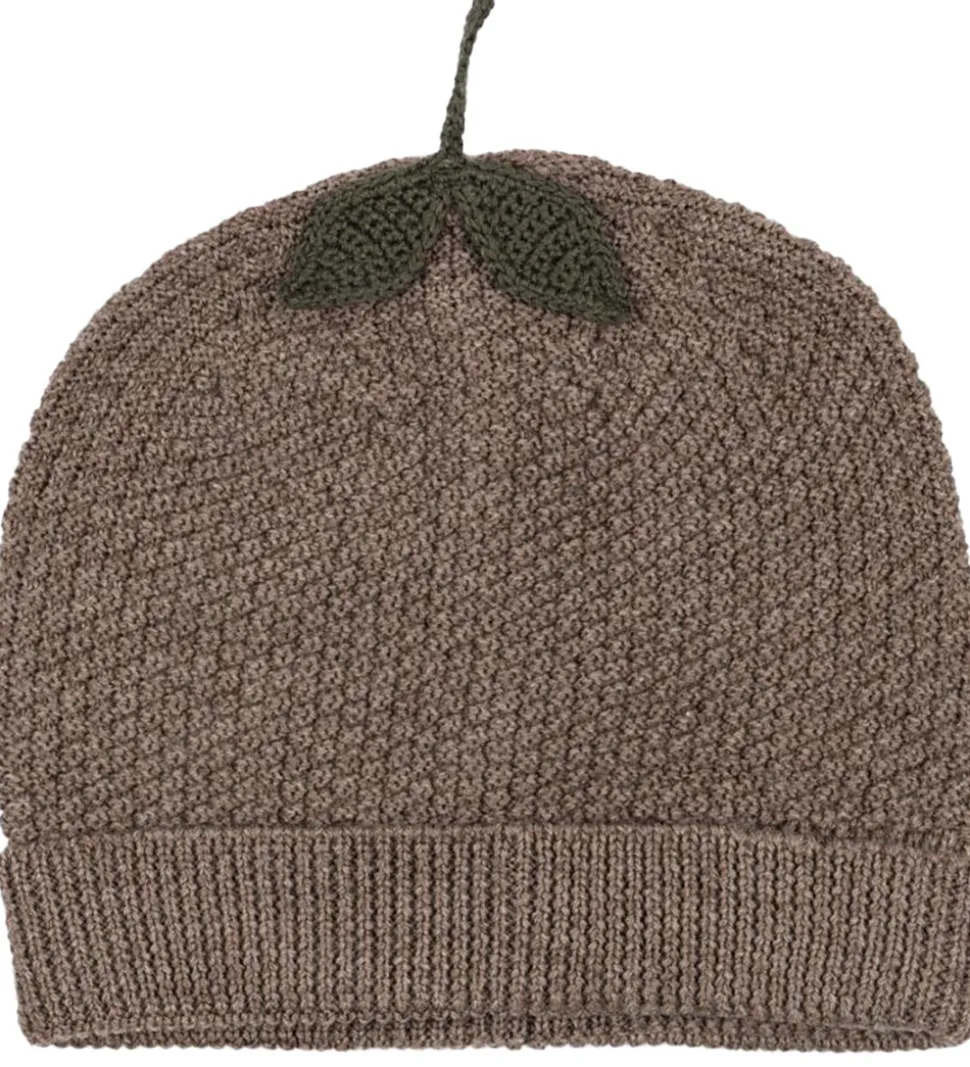 Charmerende Konges Sløjd hue i en meleret, brun nuance med en fin ribkant.