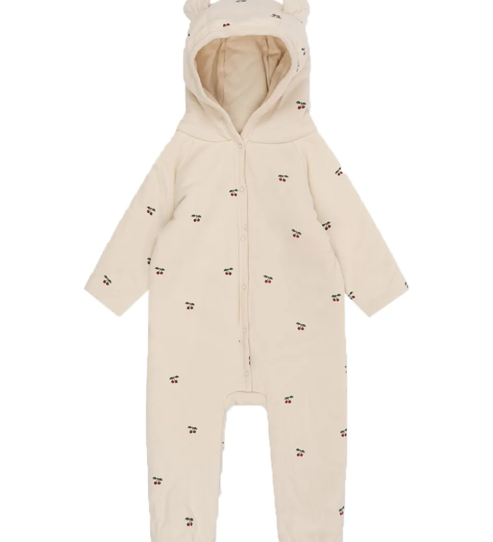 Flot Konges Sløjd køredragt i cremehvid med print af kirsebær.