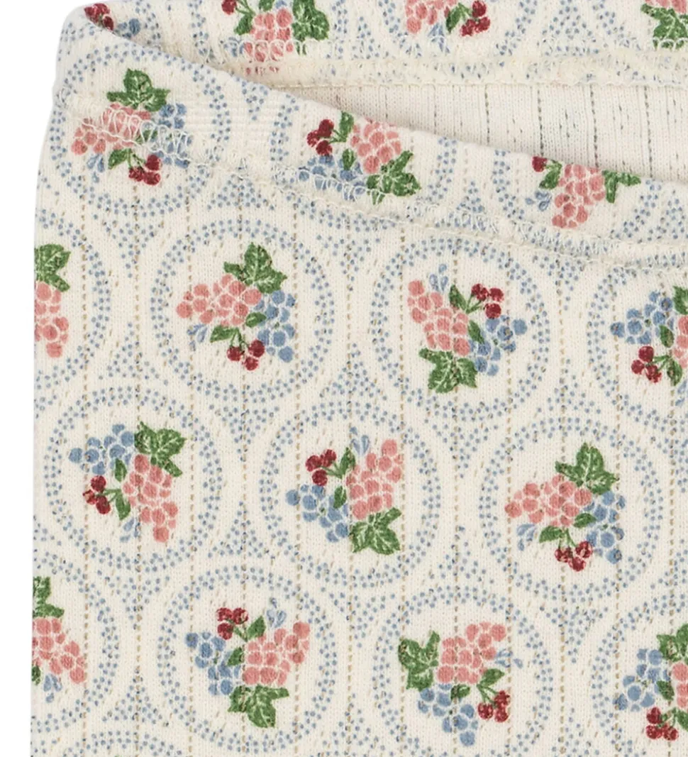 Dejlige Konges Sløjd leggings i hvid med et flot blomsterprint i blå og rosa nuancer. Konges Sløjd leggingsene har et flot hulmønster, samt en elastisk talje, der sikrer en god pasform.